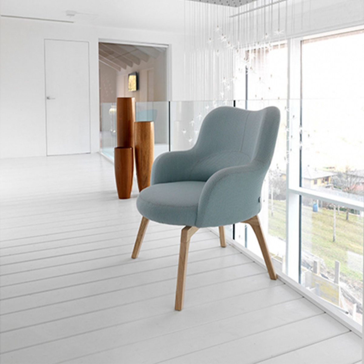 Aesthetically far away from a formal contract concept, the Sophora armchair makes space in professional environments with its sinuous, original and ergonomic design that elevates it from a simple armchair to a comfort corner.