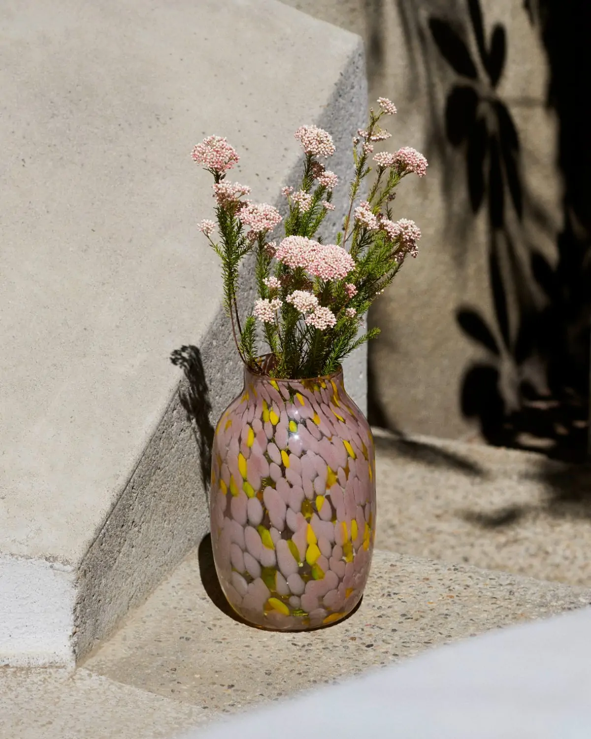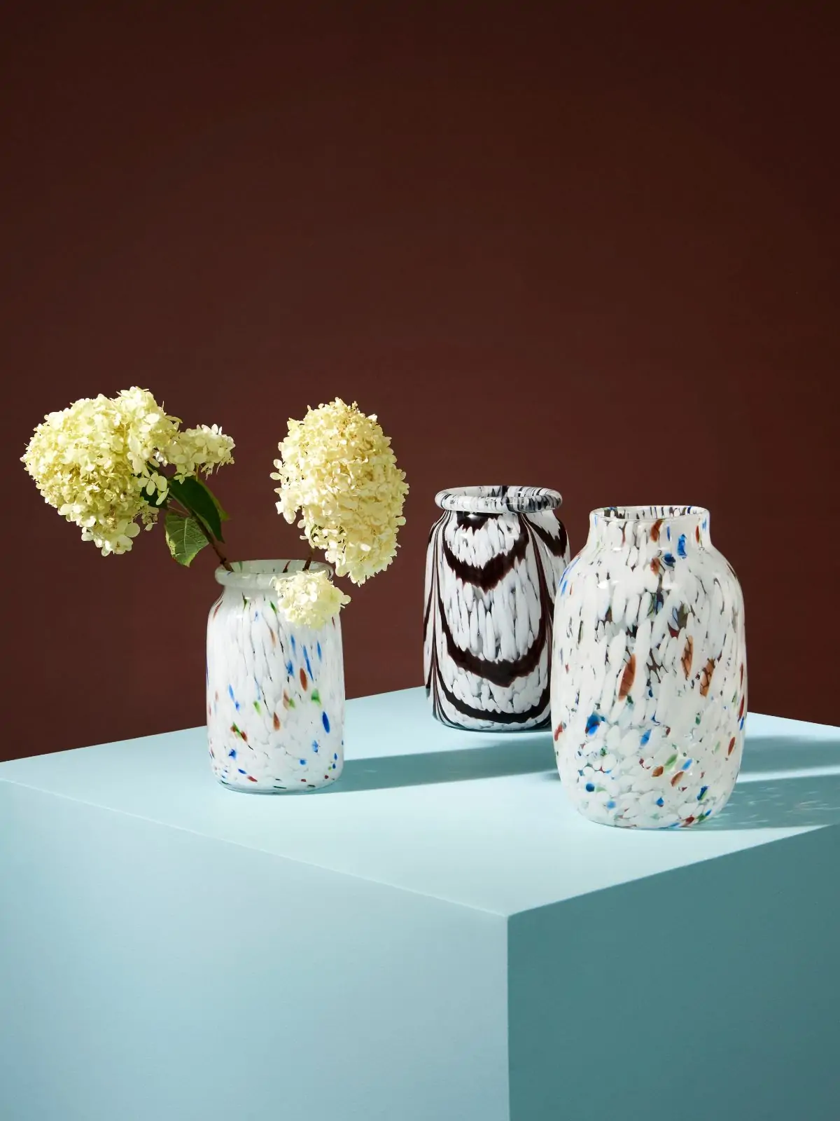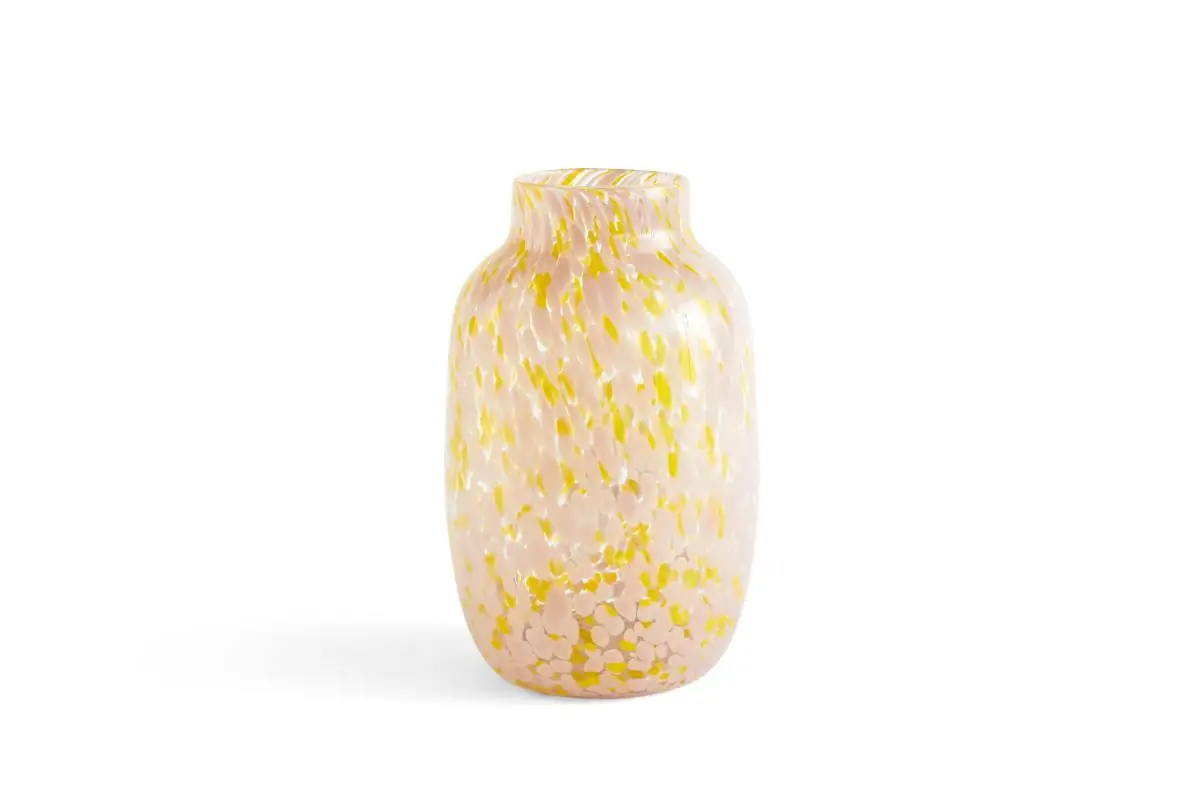 Handmade using a special glassblowing technique that involves multiple layers of coloured glass dots, the Splash Vase features a unique swirled pattern. Available in different designs, the vases can be used both for displaying flowers and as decorative objects.