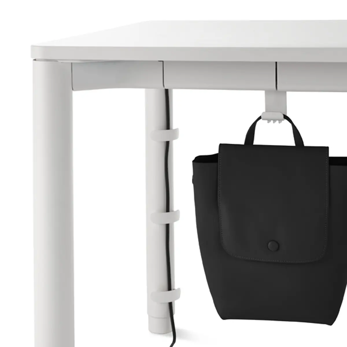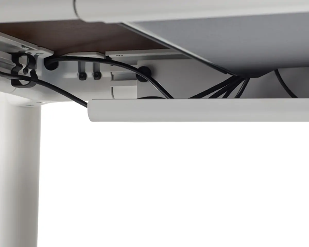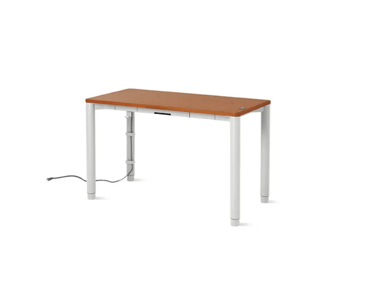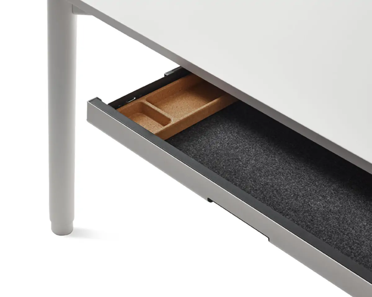 Spout is a height-adjustable table that can find a place in many settings, from offices to homes thanks to its sleek design, featuring rounded legs that feel stylish and add stability. A variety of options for configurations and finishes—as well as accessories like a bag hook, cable management, and an integrated storage drawer—make the desk truly personal.