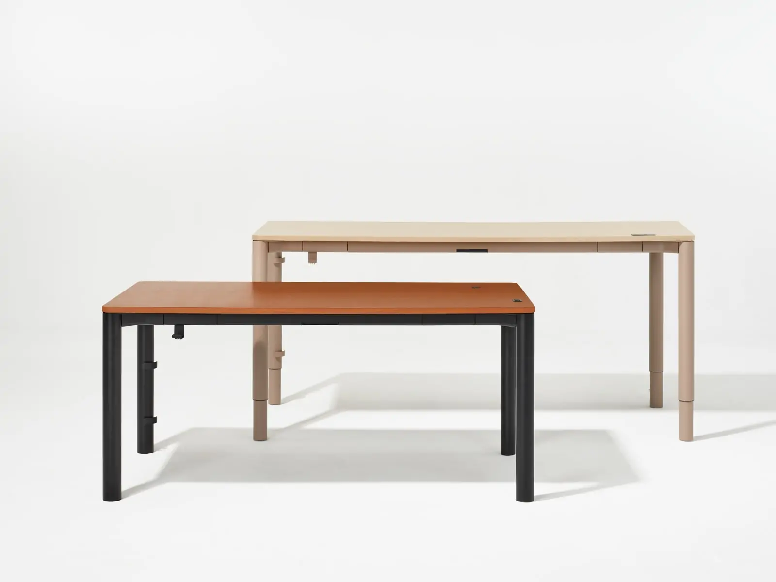 Spout is a height-adjustable table that can find a place in many settings, from offices to homes thanks to its sleek design, featuring rounded legs that feel stylish and add stability. A variety of options for configurations and finishes—as well as accessories like a bag hook, cable management, and an integrated storage drawer—make the desk truly personal.