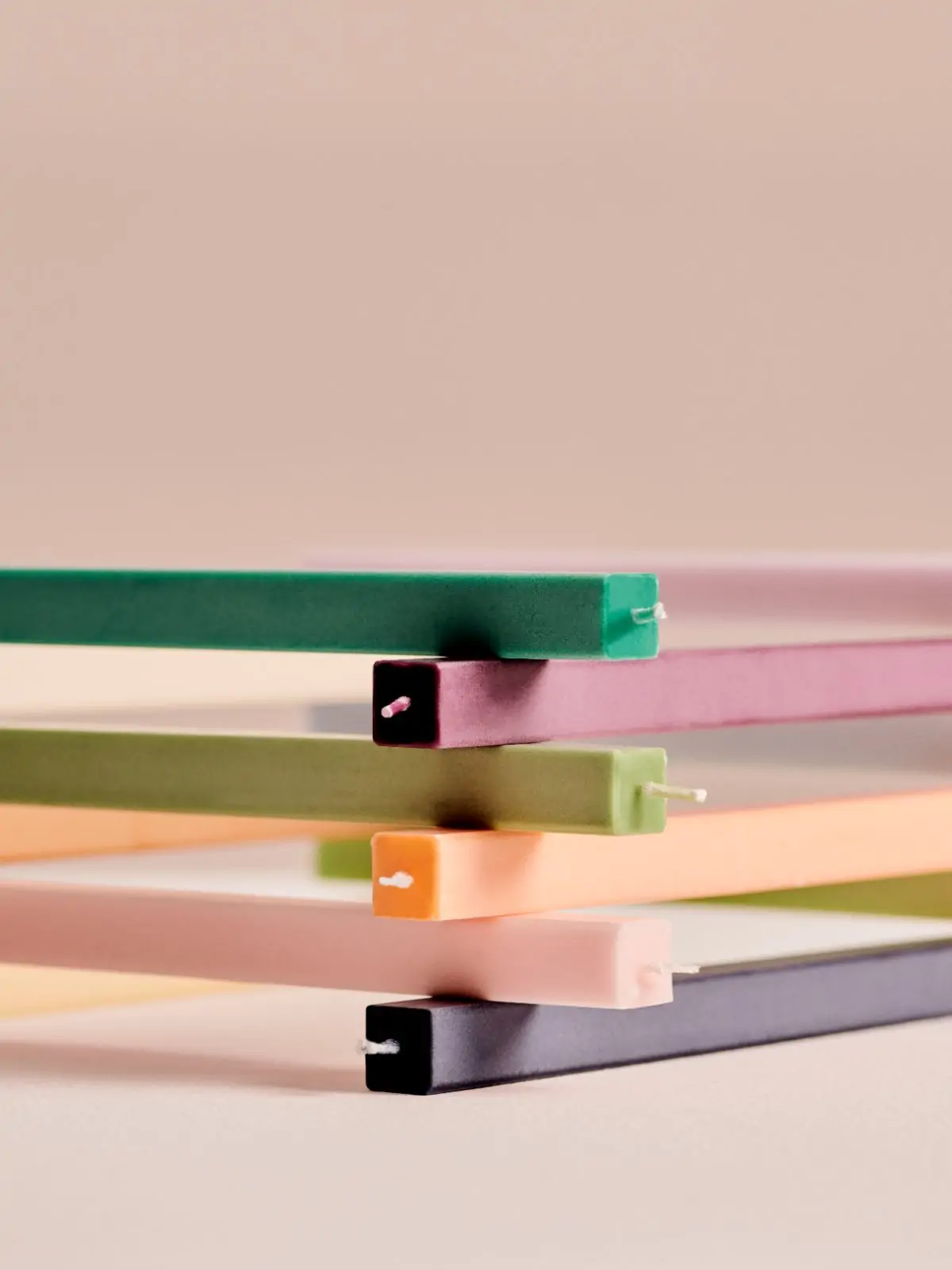 Featuring an elegant square shape and a matte finish, these colourful candles are designed to work equally well in a group or stand individually. The candles are Nordic Swan Ecolabel certified and have a burning time of approximately 7 hours. Square Candles are sold individually as well as in sets of four with different colour mixes to choose from.