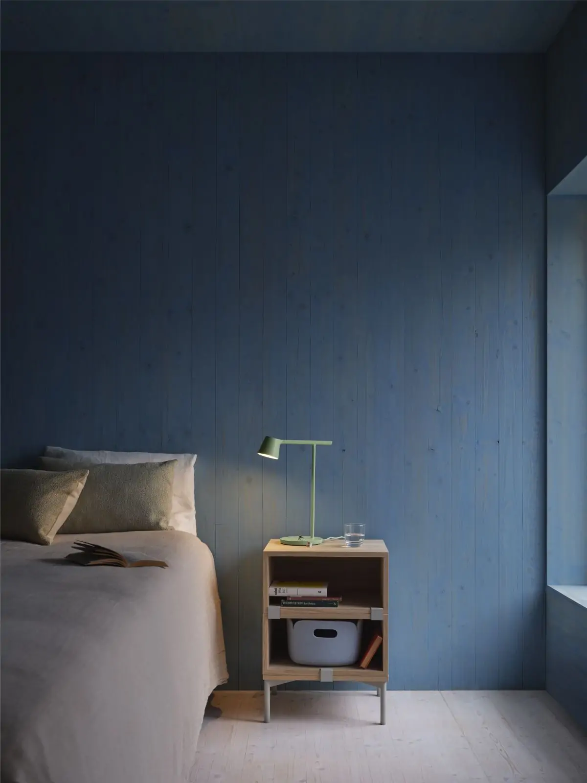 Being both versatile and functional, the Stacked Storage System can be arranged and rearranged for the exact aesthetic and functional needs of any space. Seen here is a predesigned Bedside Table configuration that brings modern and functional storage to any bedroom setting. All modules with backboard can be mounted directly onto the wall.