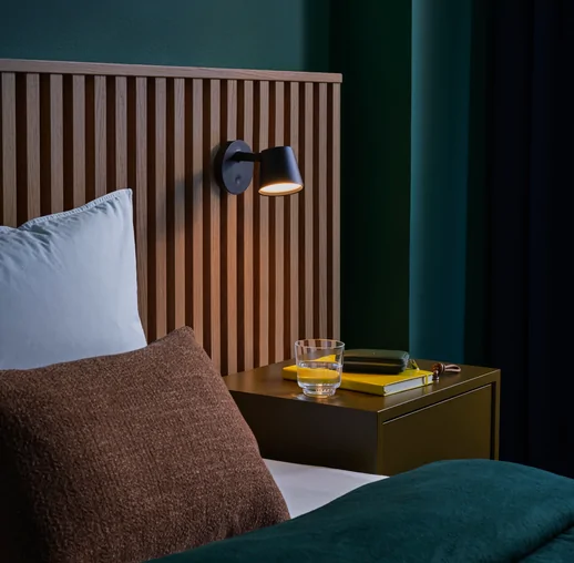 Being both versatile and functional, the Stacked Storage System can be arranged and rearranged for the exact aesthetic and functional needs of any space. Seen here is a predesigned Bedside Table configuration that brings modern and functional storage to any bedroom setting. All modules with backboard can be mounted directly onto the wall.