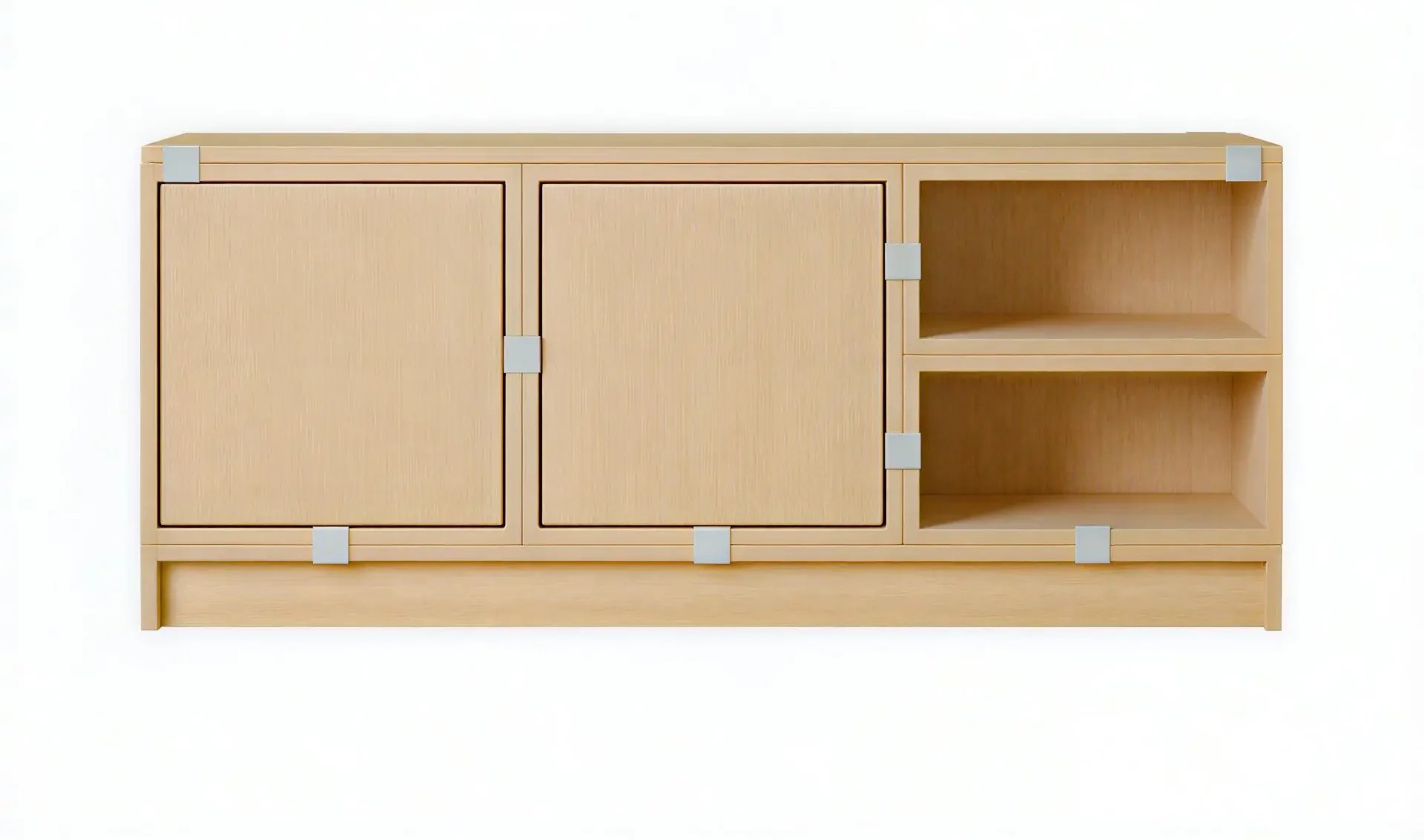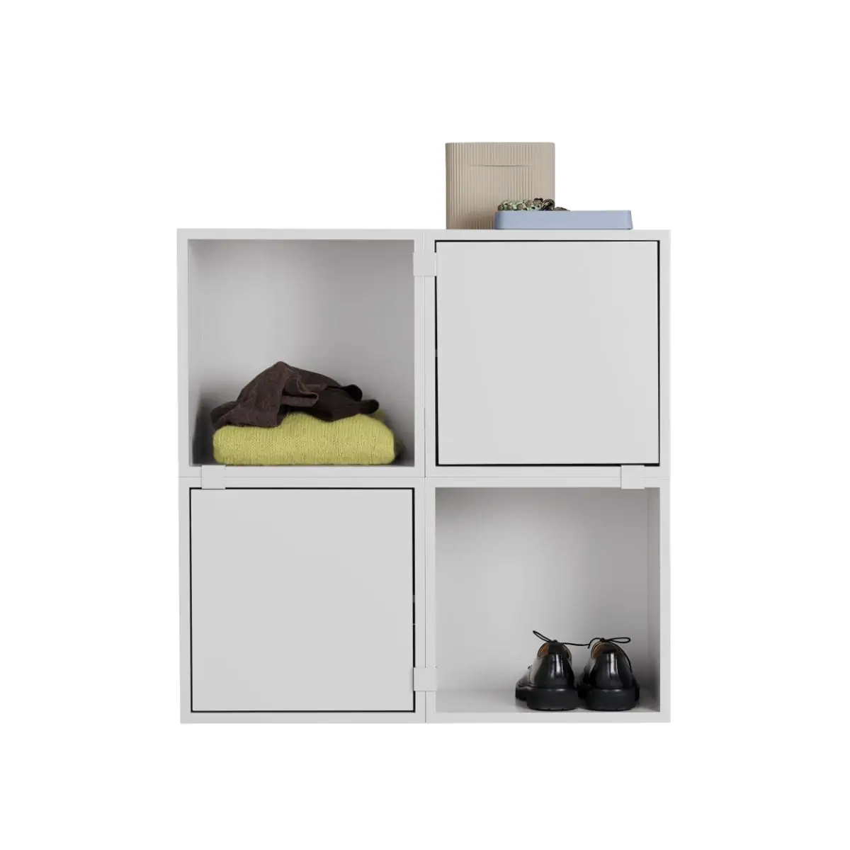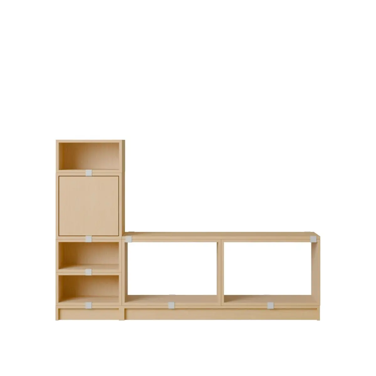 Being both versatile and functional, the Stacked Storage System can be arranged and rearranged for the exact aesthetic and functional needs of any space. Seen here is a predesigned Hallway Storage configuration that brings modern storage to any home, workplace or hospitality setting. All modules with backboard can be mounted directly onto the wall.