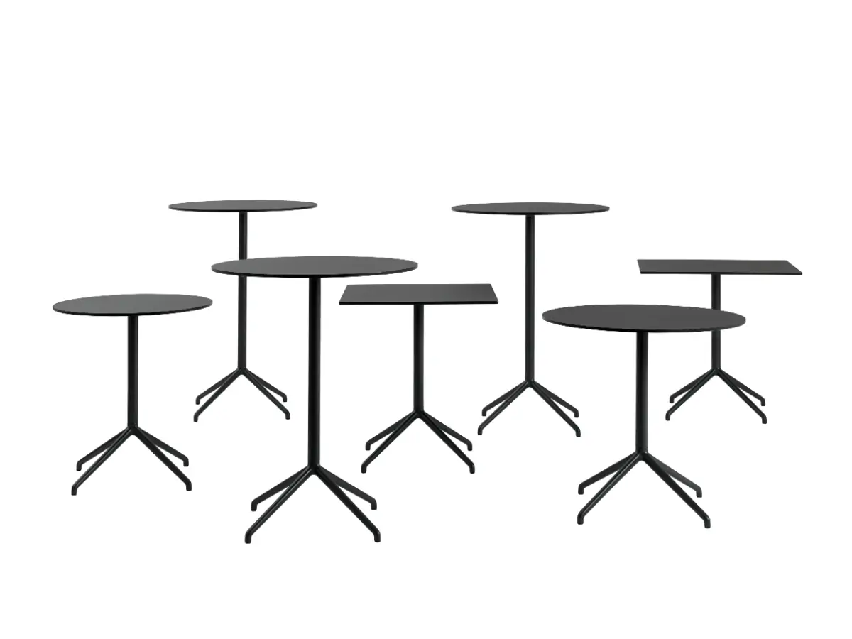The Still Café Table is designed with a clean expression and apparent function on a four-legged base, complemented by the angled edges of its table top. Available across various heights with either round or square table top, the Still Café Table is an elegant match for any kitchen area, café, restaurant, bar, conference or office setting. The higher versions also function as a hot-desk in workplaces and open areas.