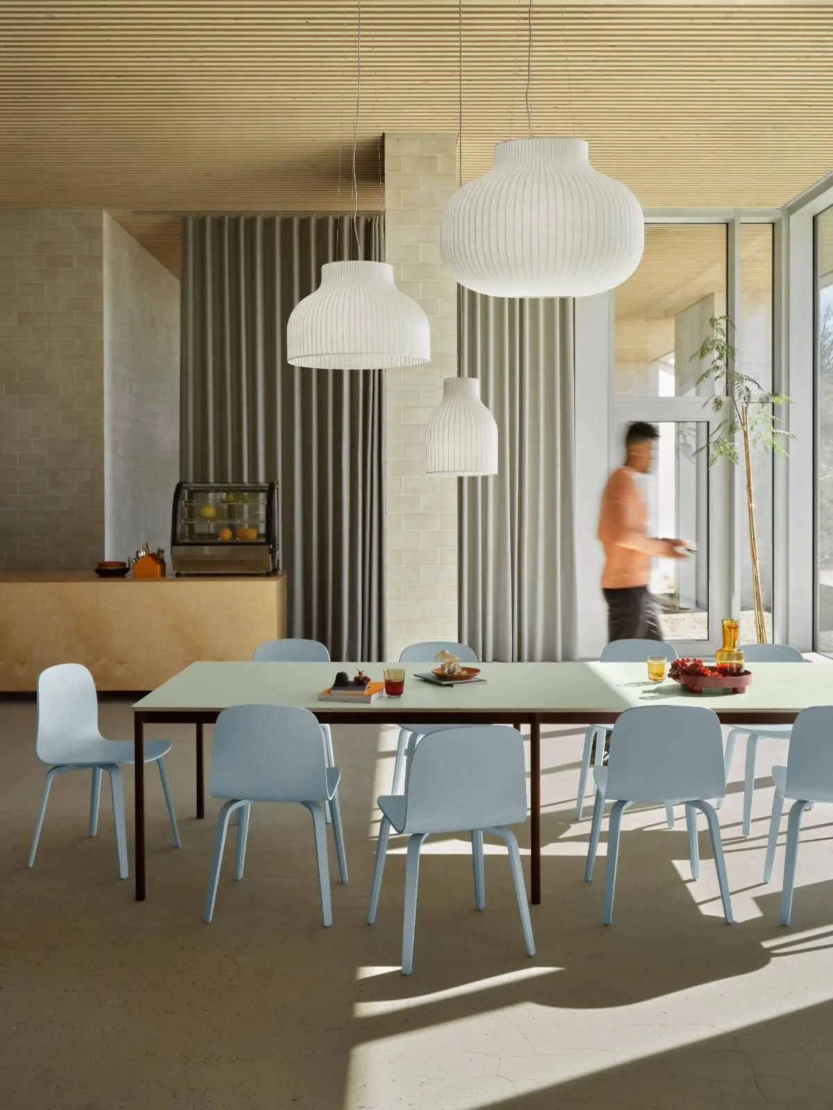 With its see-through expression, the cocoon material allows for the Strand Lamp series to filter light for a warm, comfortable glow.