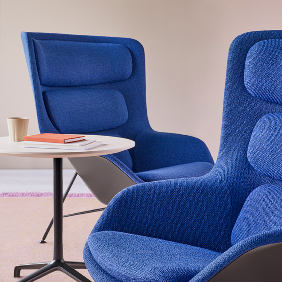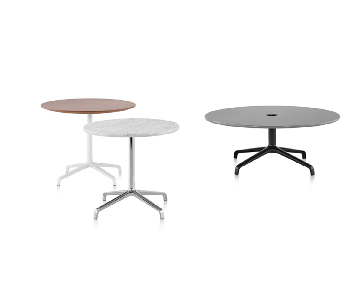 Extending the idea of comfort that inspired designers Markus Jehs and Jürgen Laub to create their Striad Lounge Chair, coordinating Striad Tables bring a confident presence to a variety of work settings. The way a beautiful coffee table anchors a living space, these occasional tables serve as gathering points for casual meetings or focused task work. Tops are fixed at just the right heights for supporting laptops and other work tools, with a choice of USB units or other power options available to keep tools powered without compromising the warm, residential appeal. Bases share the same sleek profile and materiality as the Striad Lounge Chair’s four-star base.
