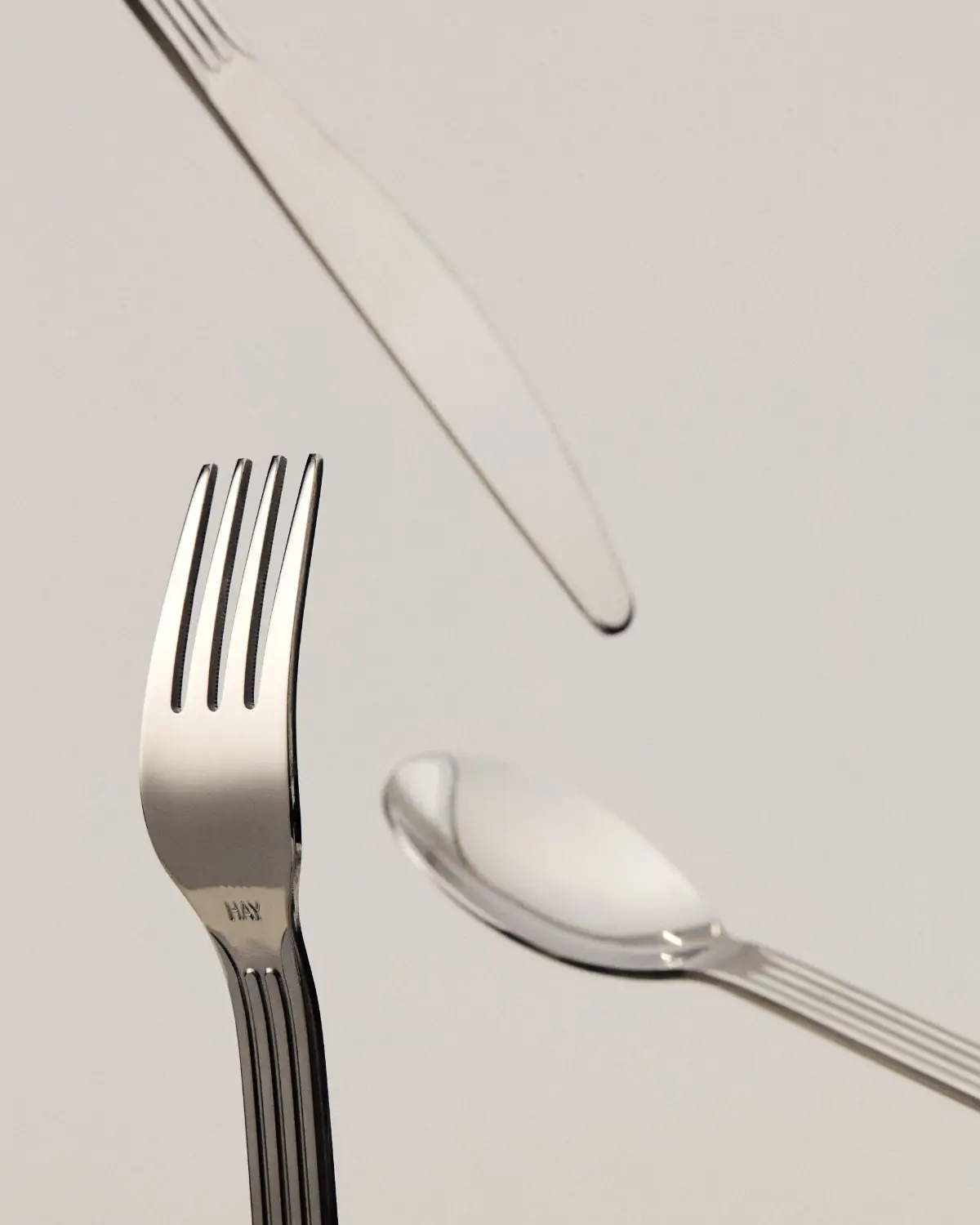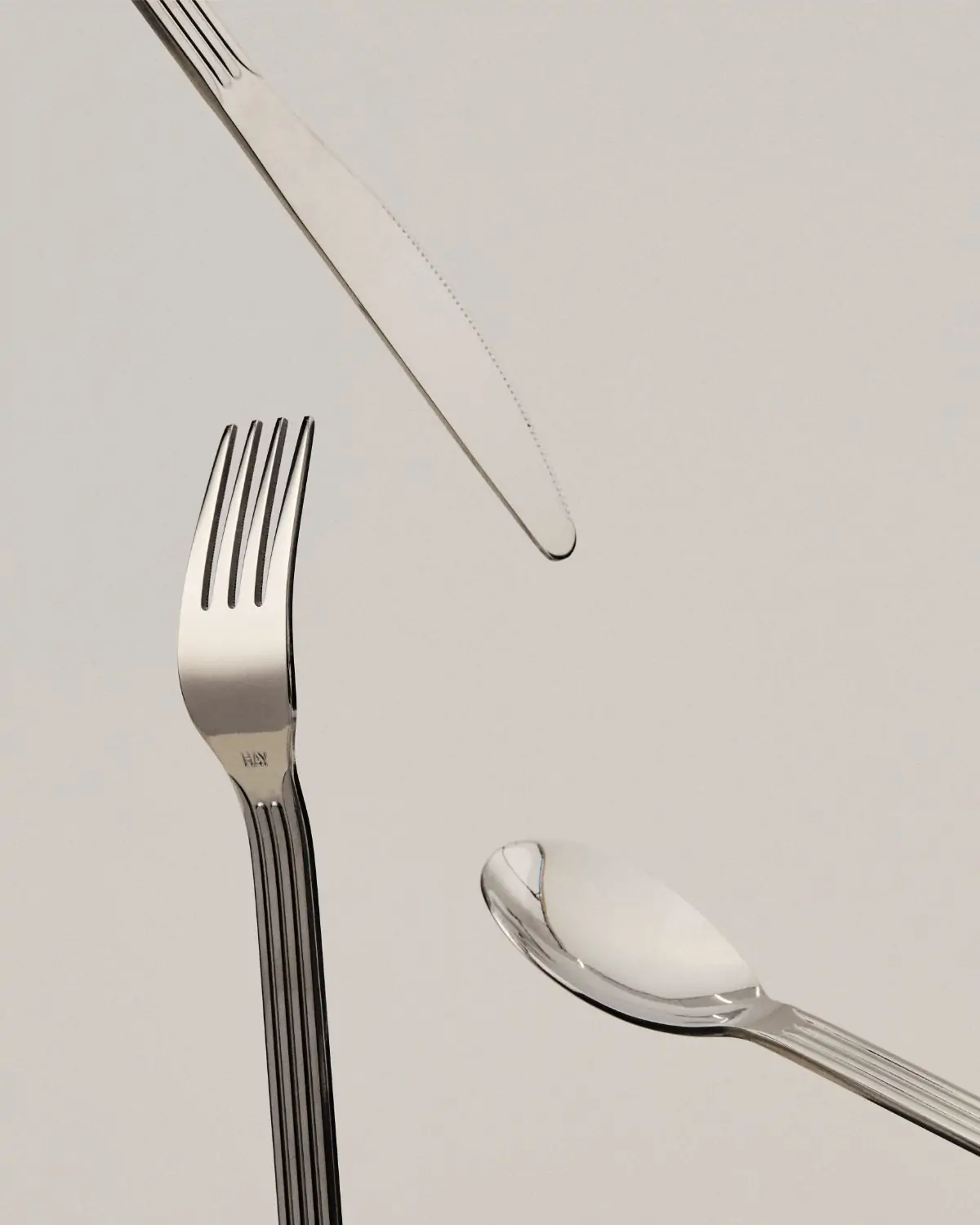 Designed by Swiss design studio BIG-GAME, Sunday is a cutlery series comprising knives, forks, spoons and teaspoons with fluted handles. Made in durable stainless steel.