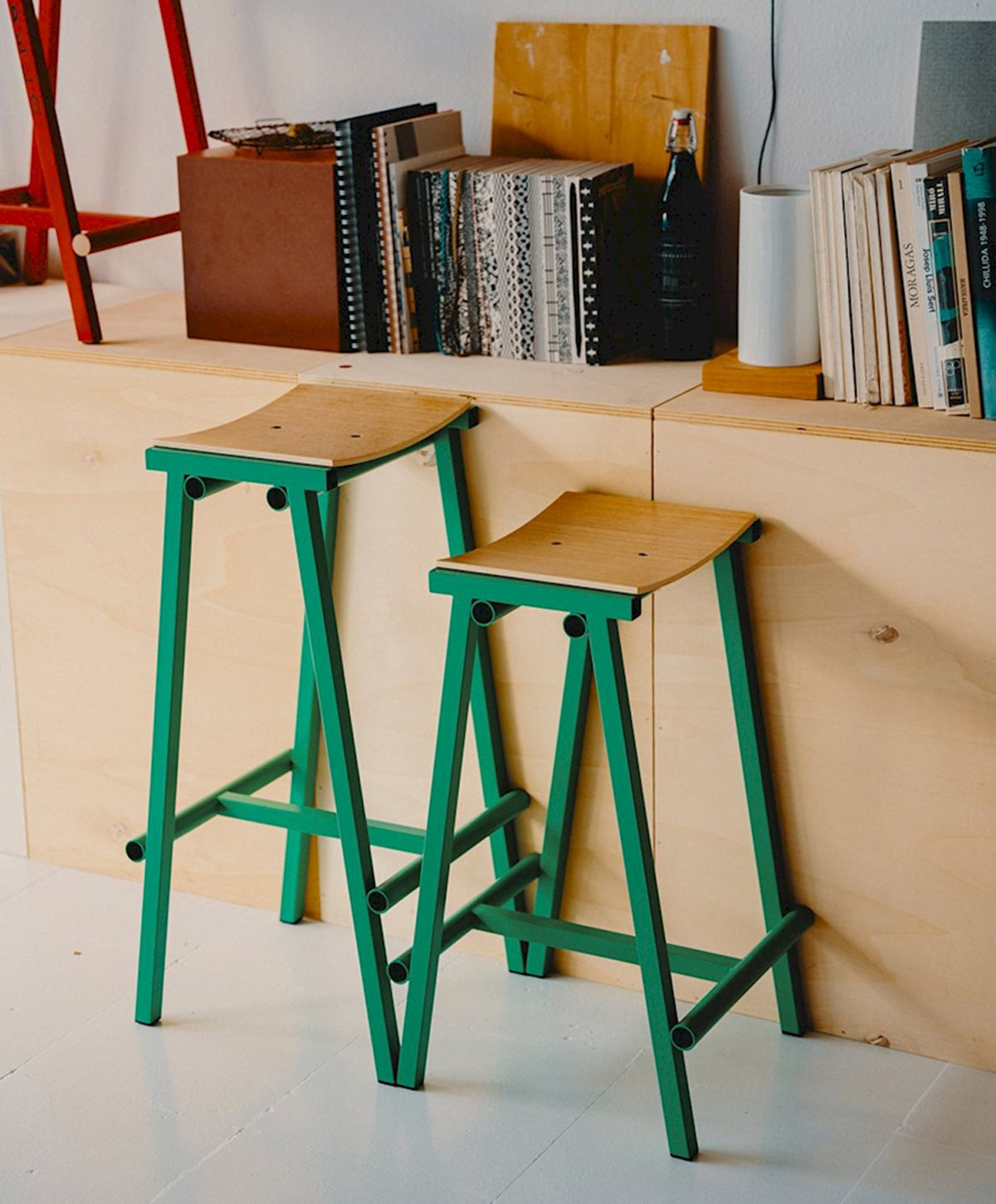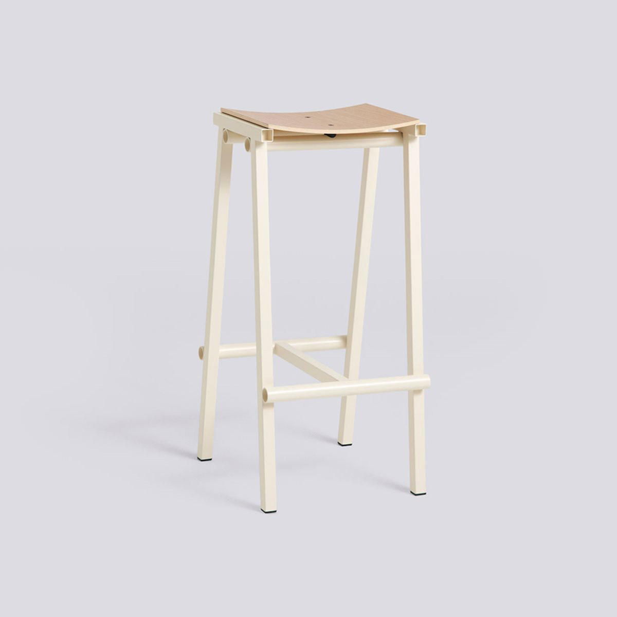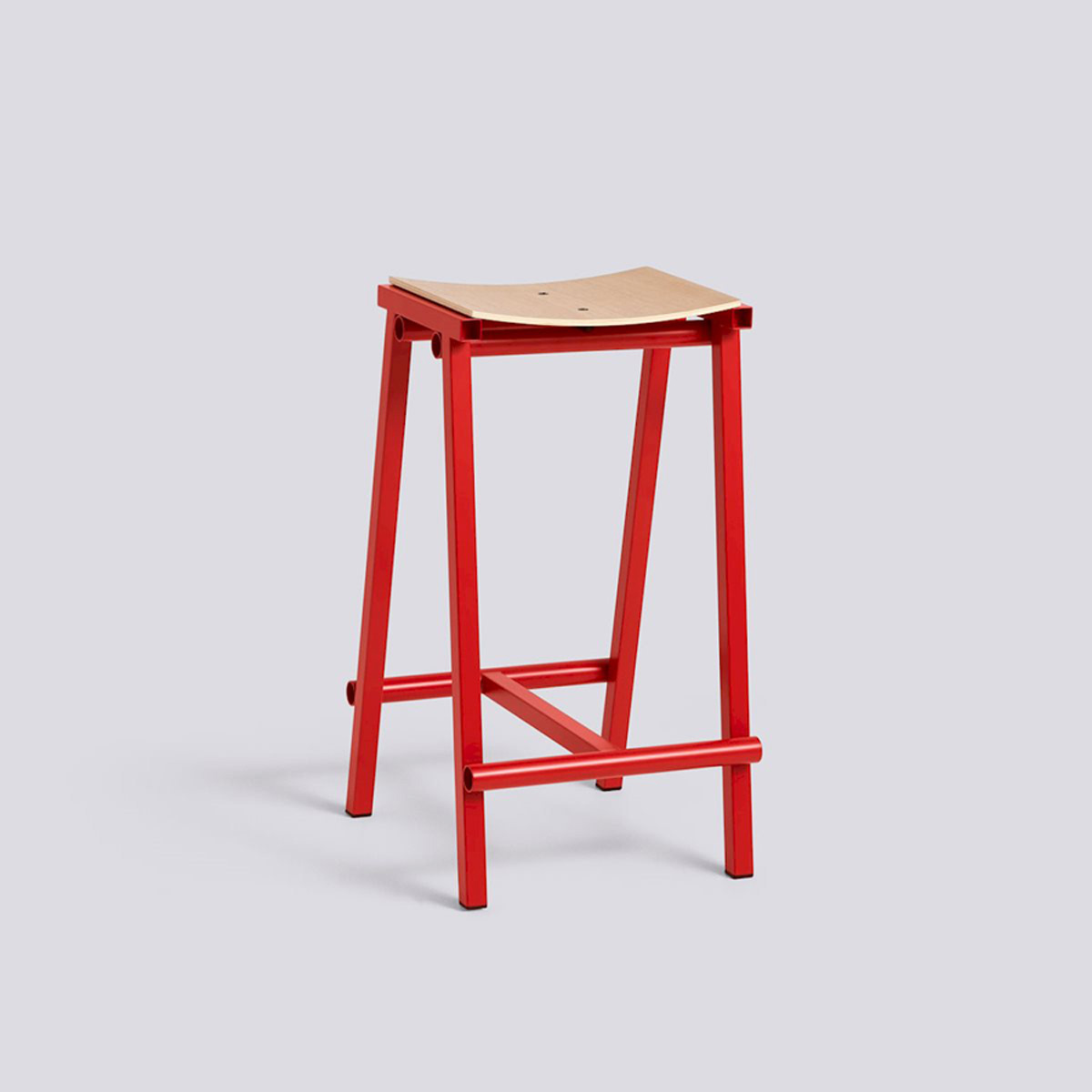 Designed for HAY by Marc Morro, Taburete 8 Bar Stool signifies the start of a new and exciting collaboration with the Spanish furniture designer. Named ‘8’ after the number of prototypes made until the final version was perfected, the resulting stool exudes an honesty and radical aesthetic characteristic of Morro’s direct approach to design. Both the curved plywood seat and steel tubing frame are clearly presented, with the different components enhanced by their raw simplicity and bold use of colour. The stool’s robust construction combined with its minimalistic expression make it easy to integrate into a wide variety of environments.