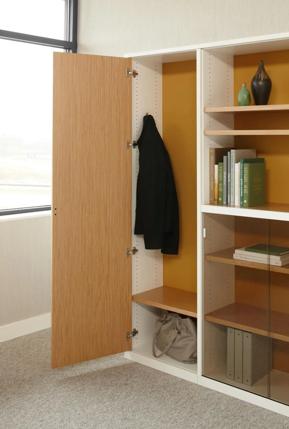 By relocating the storage capacity of traditional pedestal and overhead units, as well as technology management, to the spine, the space around the primary worksurface was opened up.
