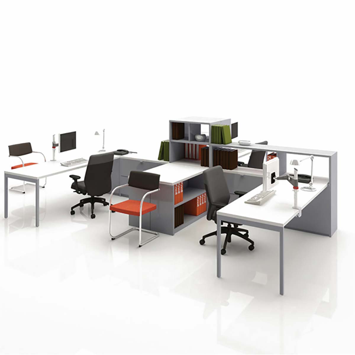Essentially a 15” thick panel, Template divides space and provides comprehensive storage solutions, including hanging files, simultaneously. Template integrates seamlessly with Antenna® Workspaces and Dividends Horizon®.
