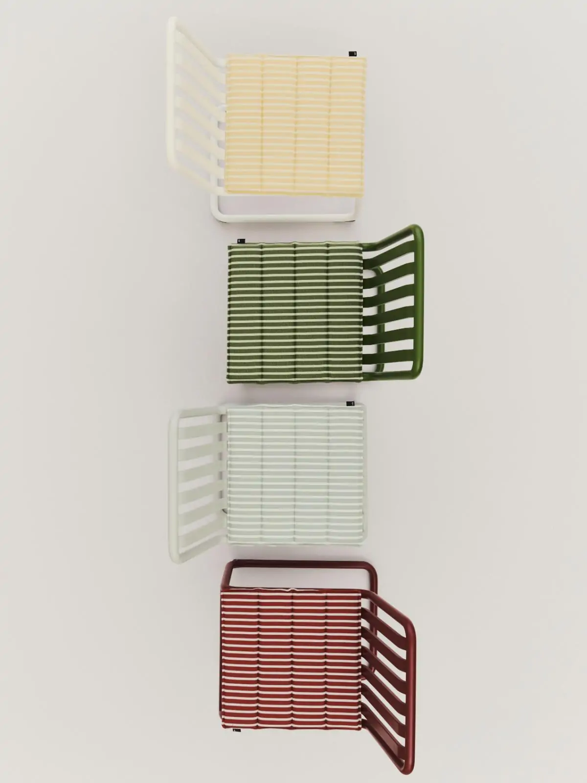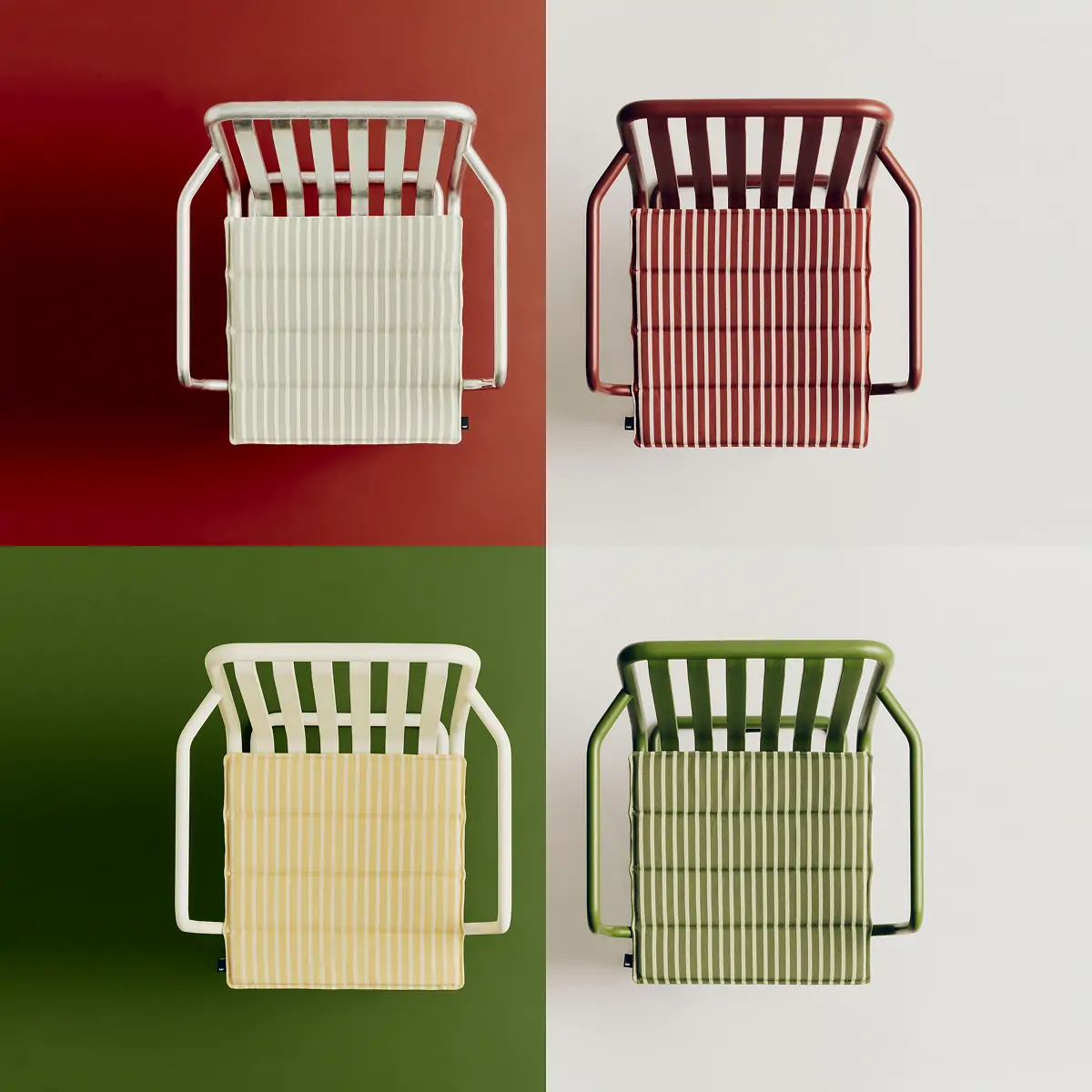 Designed to enhance seat comfort on outdoor furniture, the Terrazza Seat Cushion is made from resilient recycled polyester. Available in a selection of versatile striped and solid designs, the square shape fits HAY designs as well as other garden chairs.