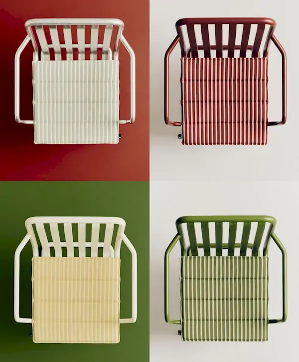 Add comfort – and style – to outdoor seating with HAY’s Terrazza Seat Cushion (2026). Made from weatherproof fabric with a quick-drying foam interior, it lets you linger longer in nature. Offered in a variety of solid colors and a striped print. Made in China.