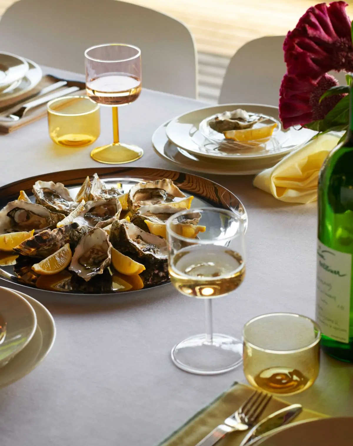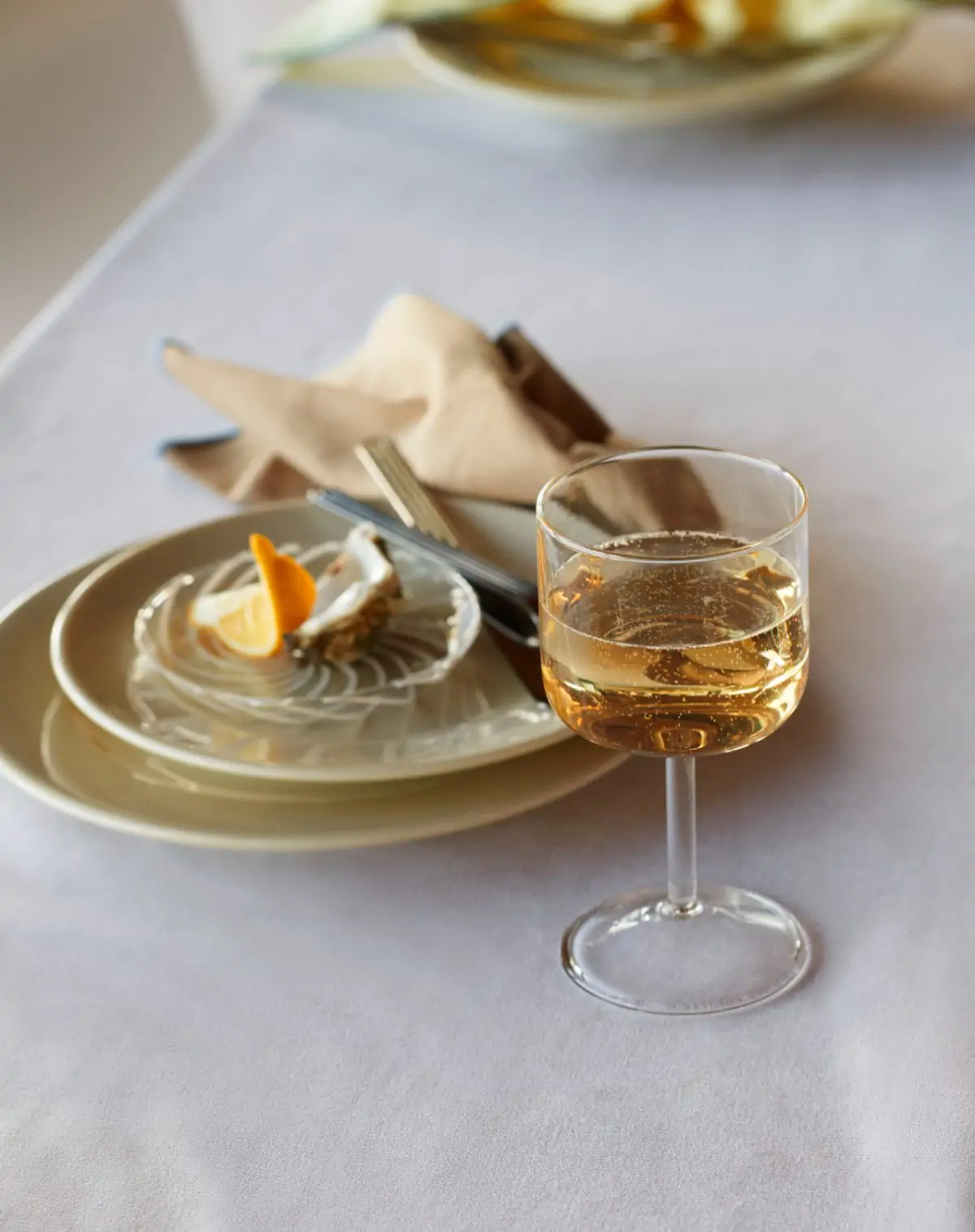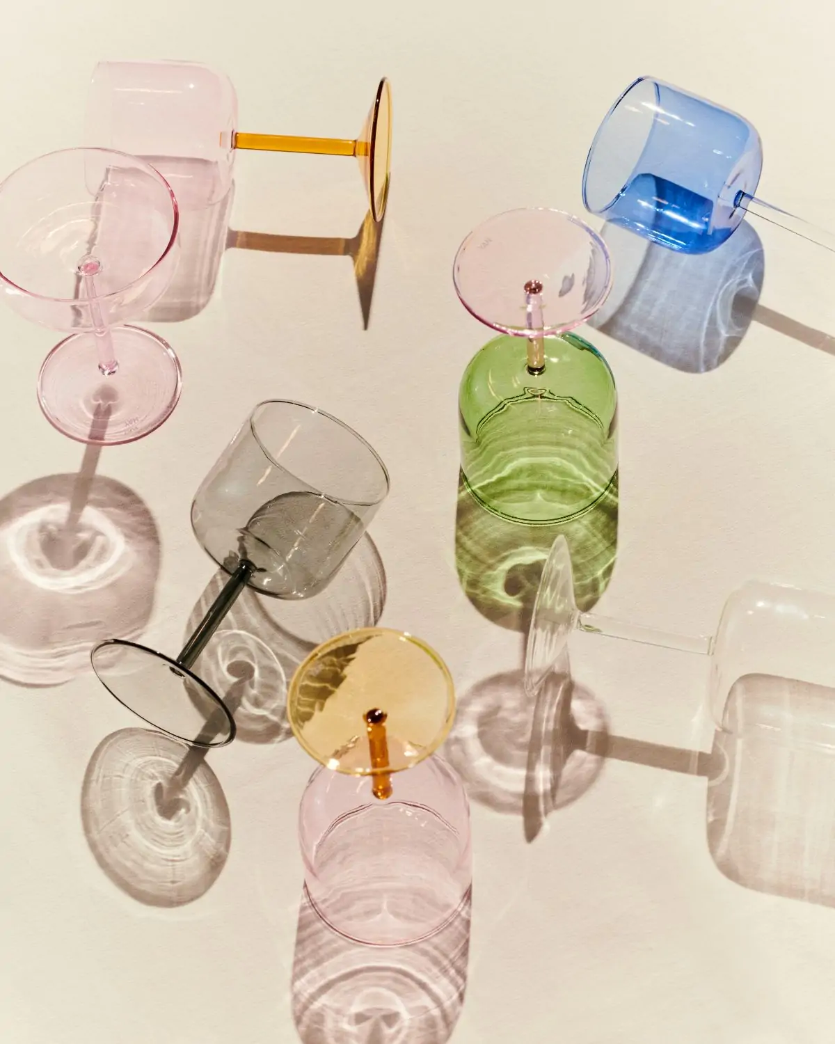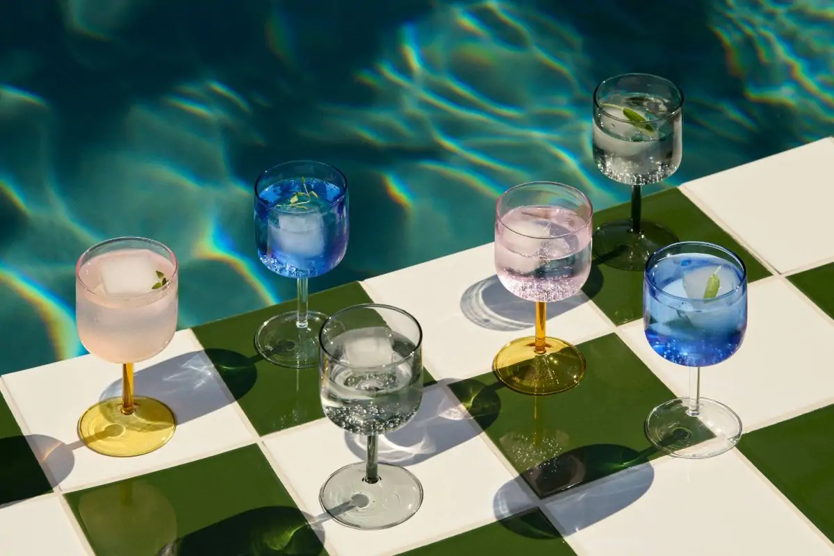 Tint Wine Glass is a collection of wine glasses made in tinted and clear borosilicate glass. The elegant, simple design is suitable for serving wine, as well as water, juice and other soft drinks. The glasses come in sets of two, available in different colours.