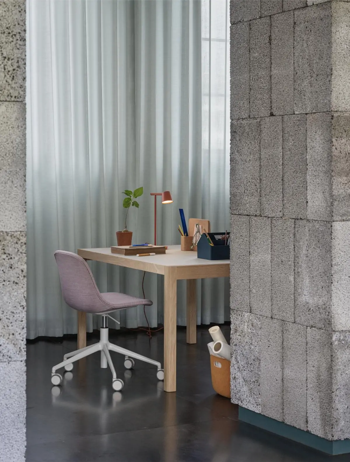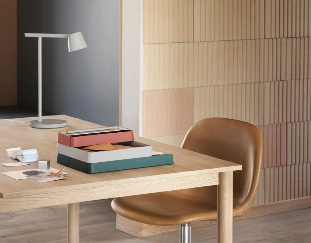 Created from the idea of stripping a design down to its essentials, the Tip Table Lamp is an example of simple, functional design with careful attention to detail. Offering direct as well as ambient light, the lamp’s adjustable head and arm feature an opal diffuser and dimmer function that effortlessly alters the volume of light.
