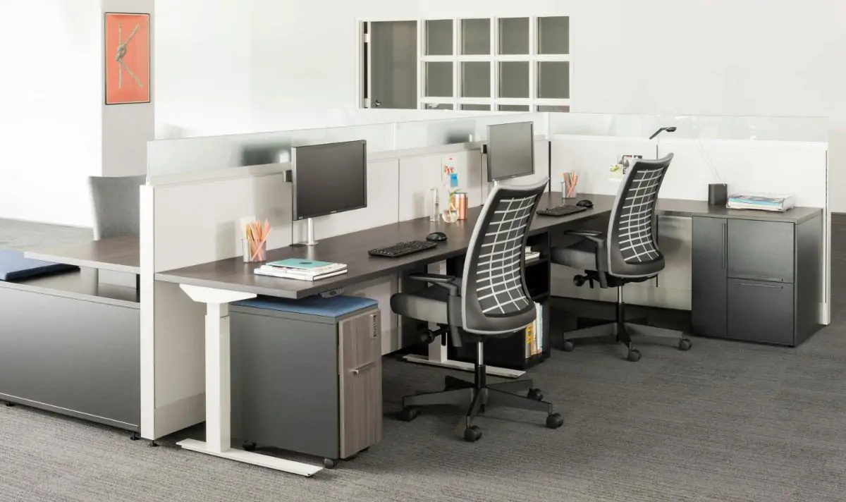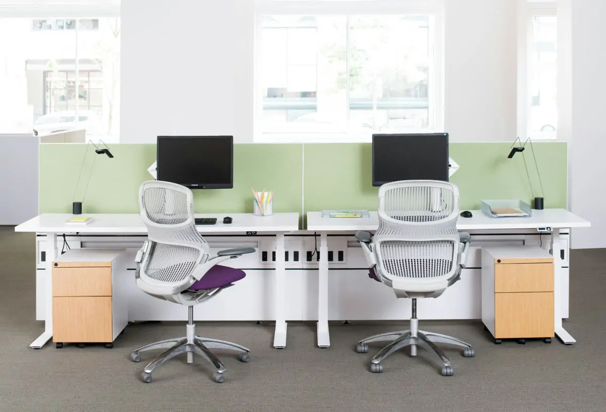 Tone is a comprehensive collection of height-adjustable tables, offering dozens of shapes, sizes, colors and configurations to outfit any space. As a standalone table or together with monitor arms, keyboard trays and privacy screens, Tone promotes well-being by allowing users to keep moving throughout the day.