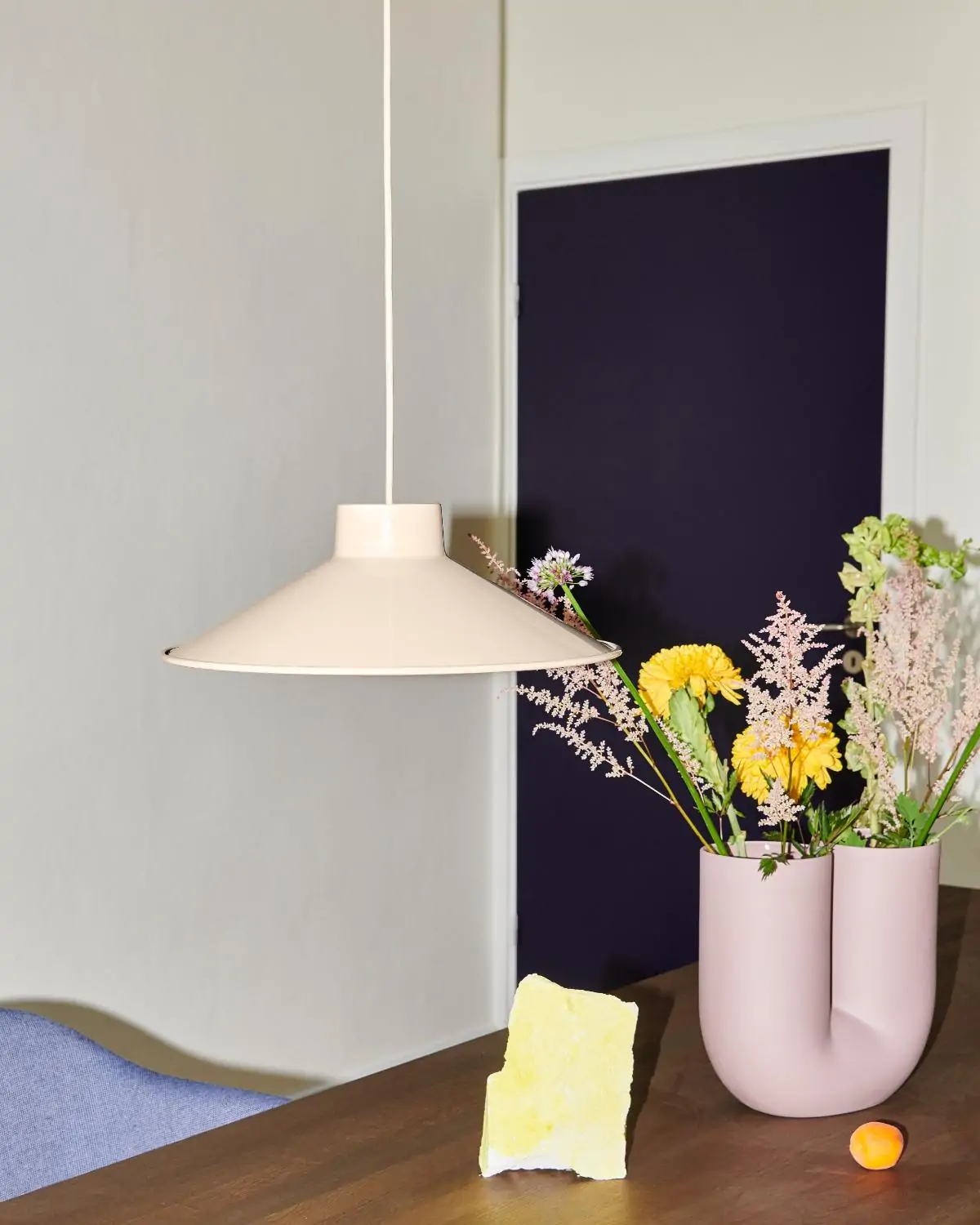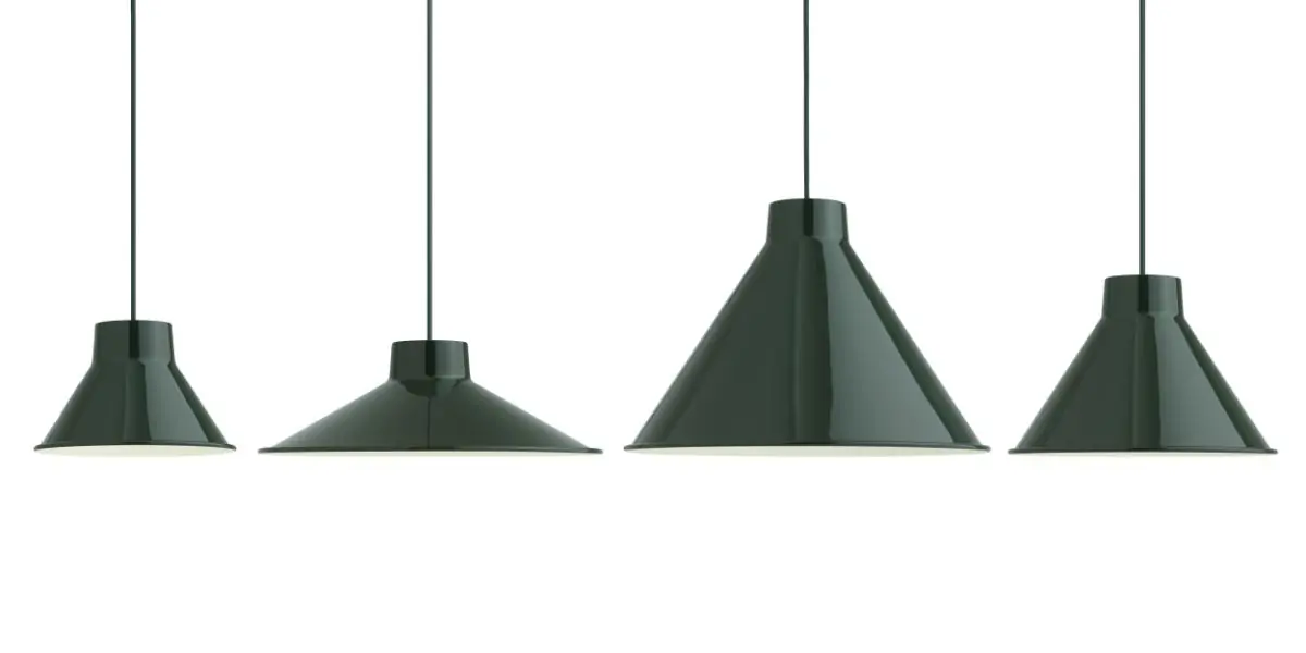 With its universal and simple design, Top Pendant is a contemporary reinterpretation of the archetypical cone-shaped pendant. Its top is a striking feature designed to neatly fit its compact LED light source. Manufactured in spun steel with a graphic rolled hem, it is a versatile lighting family that offers an array of opportunities in color, size and function.