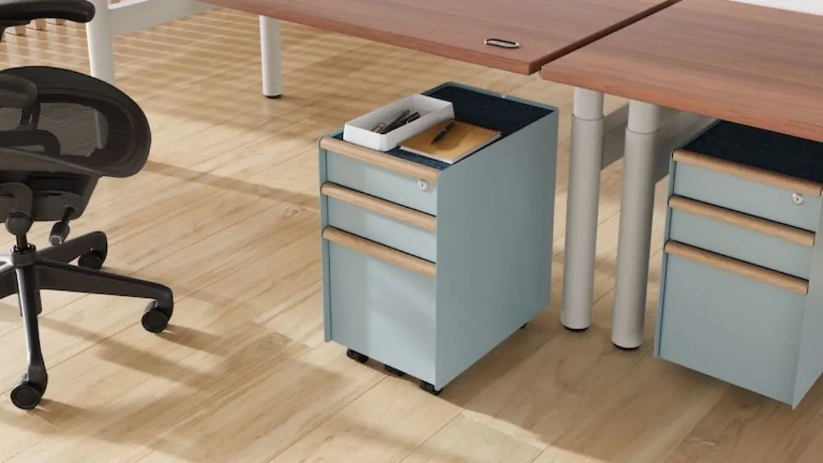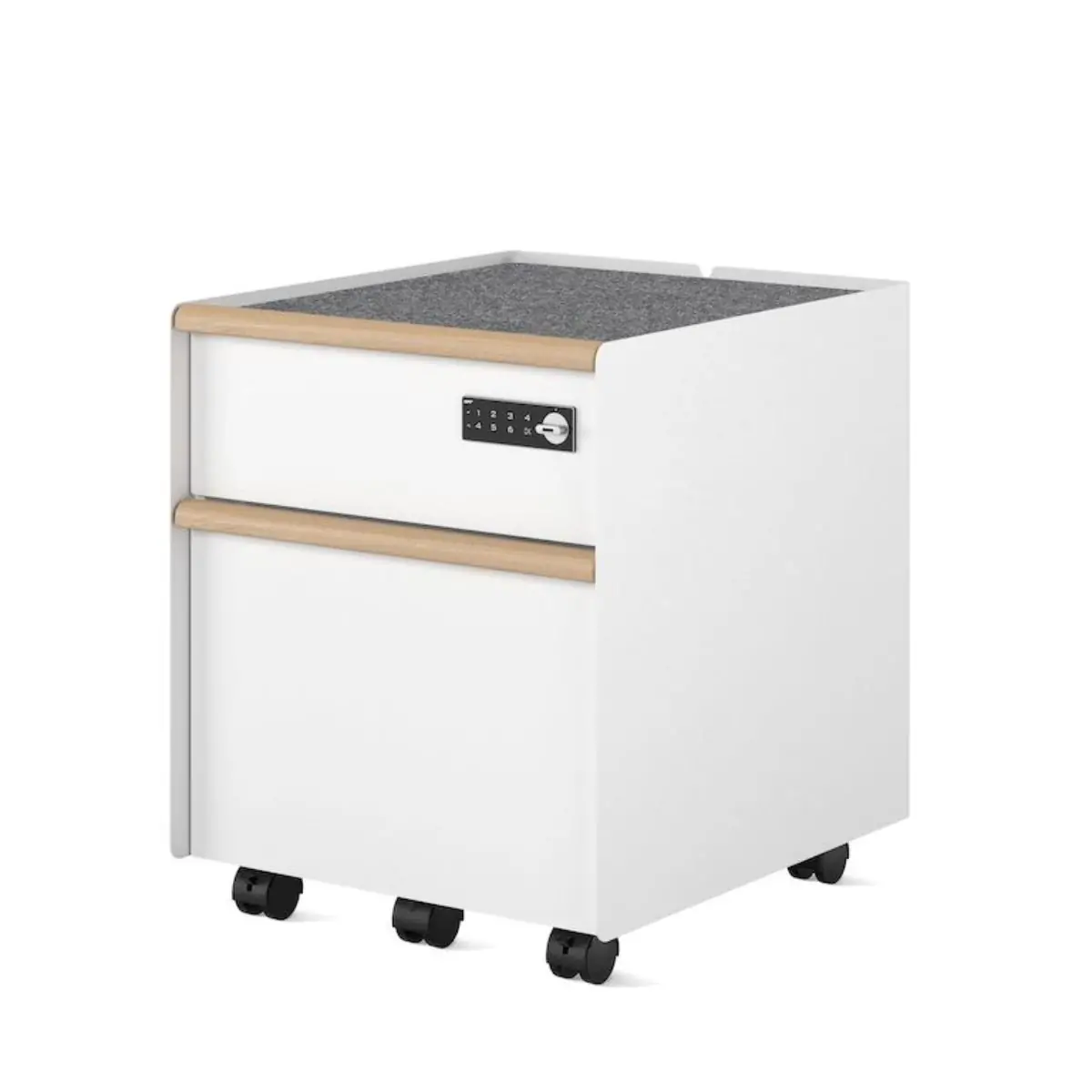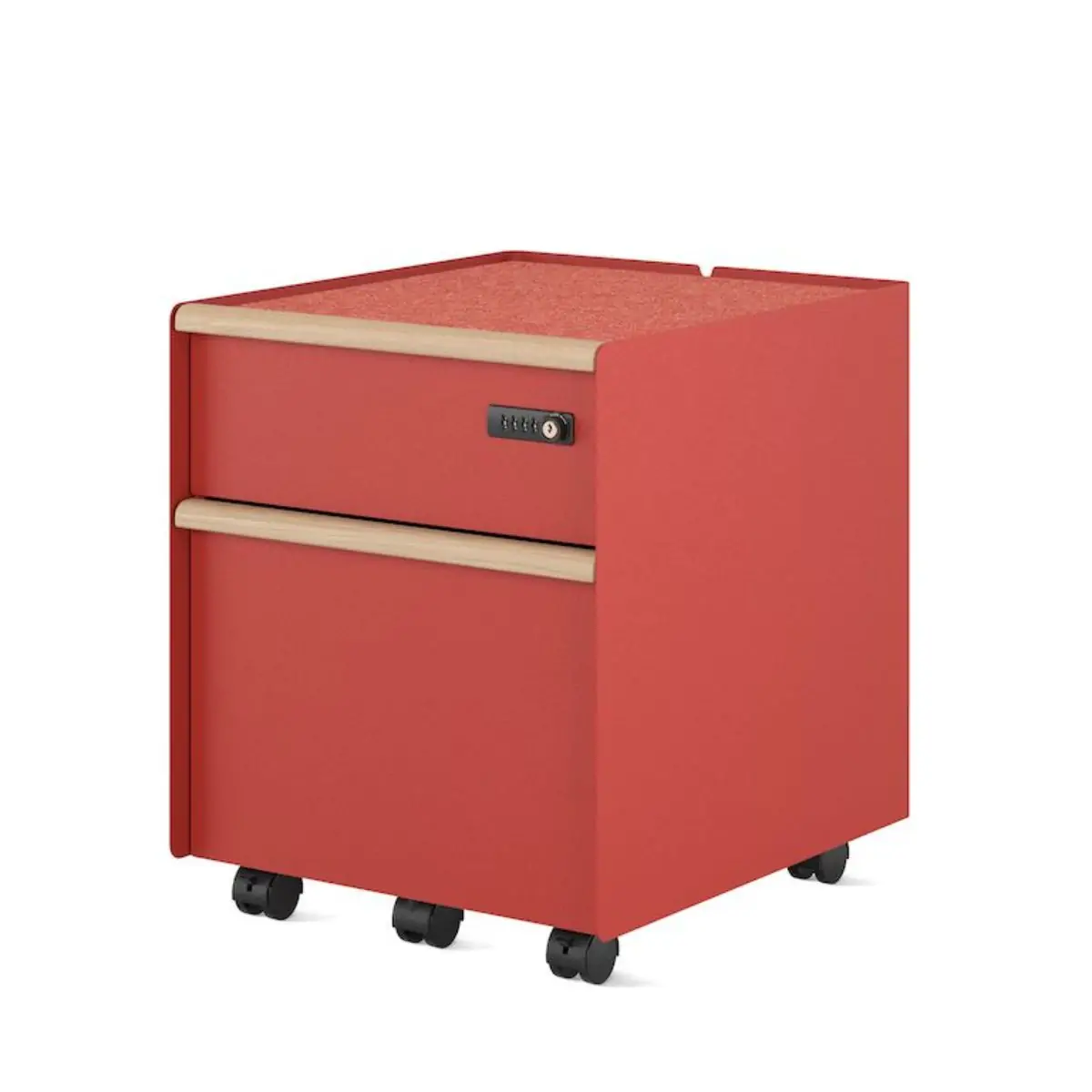 Trac by Herman Miller has a streamlined design with thoughtful touches. Optional wood drawer handles add interest, while a tray liner provides a soft landing for personal items and adds visual warmth or a splash of colour. In addition to providing extra stability overall, a centre castor at the base supports the bottom drawer so it operates smoothly.