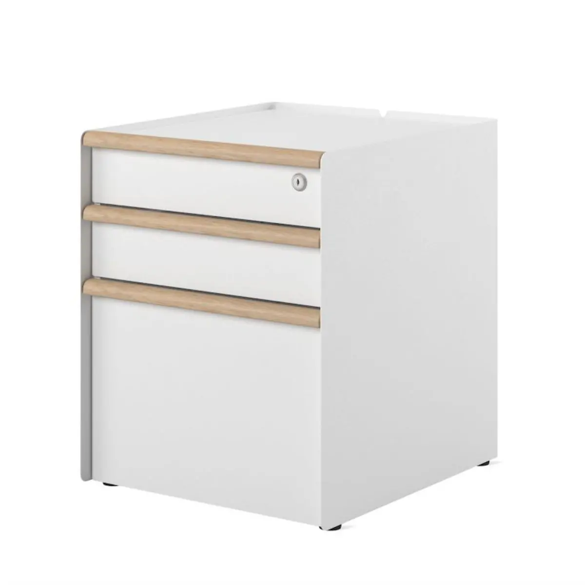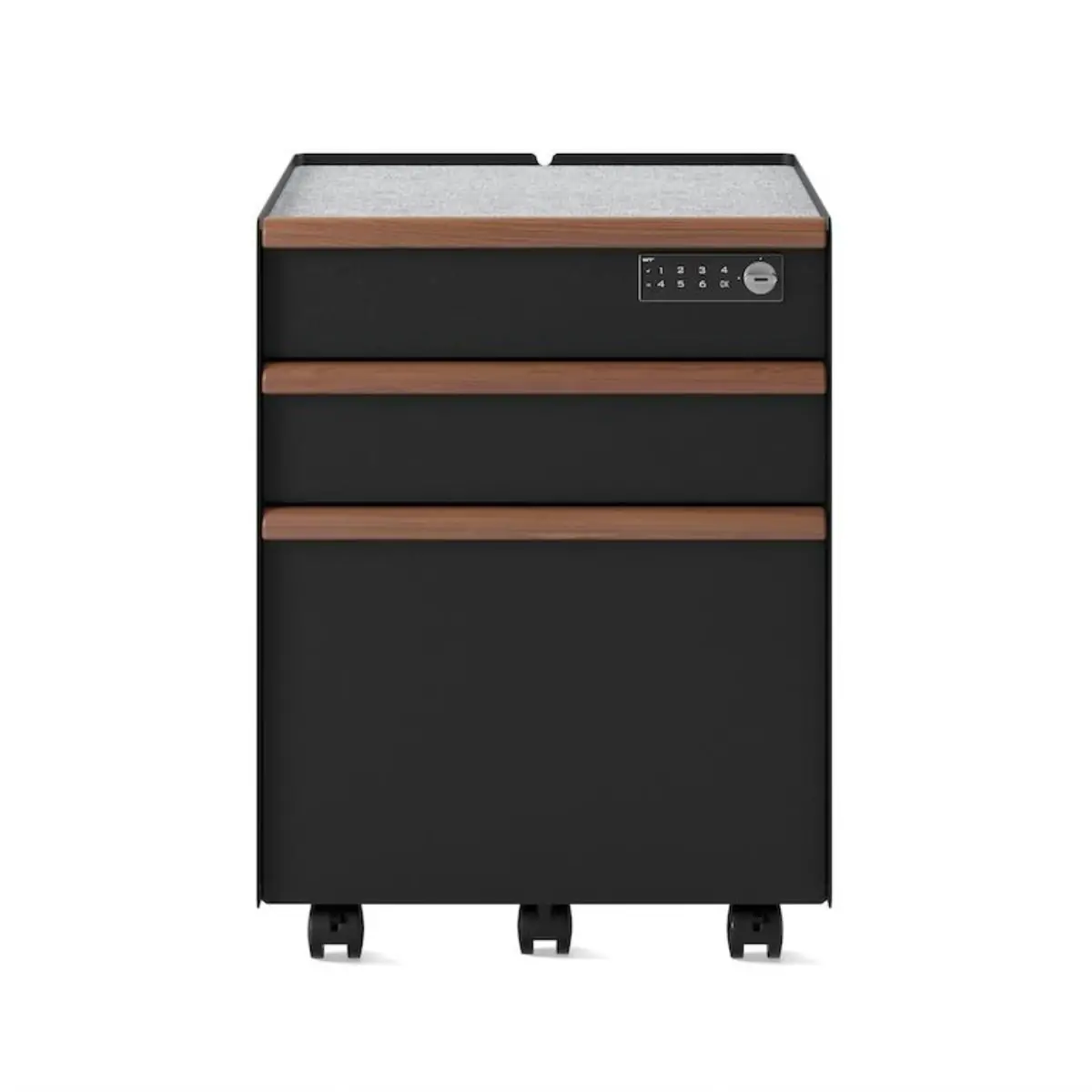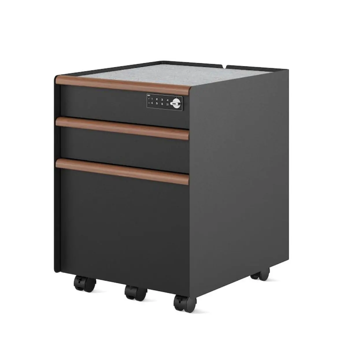 Trac by Herman Miller has a streamlined design with thoughtful touches. Optional wood drawer handles add interest, while a tray liner provides a soft landing for personal items and adds visual warmth or a splash of colour. In addition to providing extra stability overall, a centre castor at the base supports the bottom drawer so it operates smoothly.