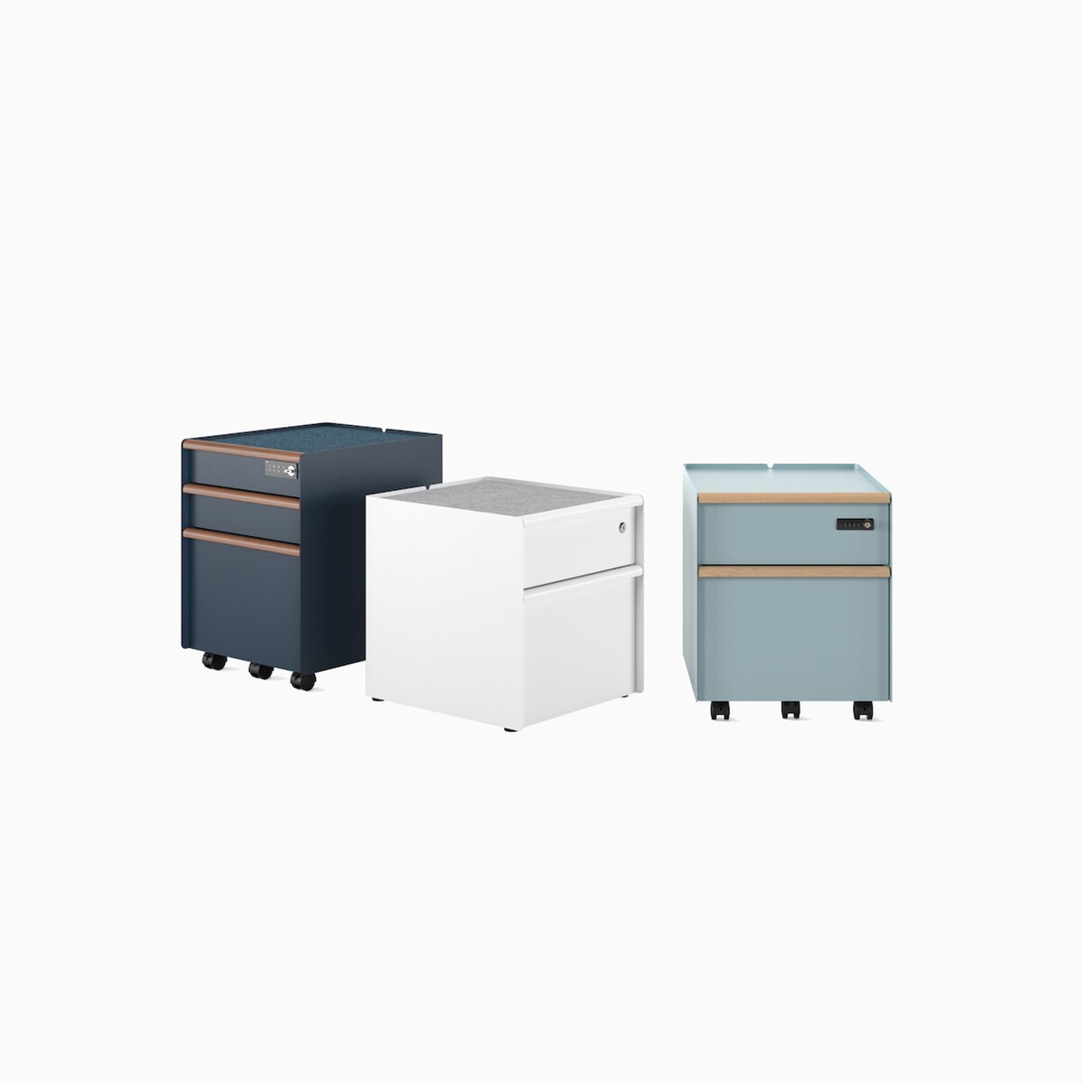Trac by Herman Miller is locking personal storage designed for today’s office. With a trim profile that nests neatly under the work surface, slender drawer pulls, and a tray liner that adds personality through color, it’s storage that fits in while helping out.