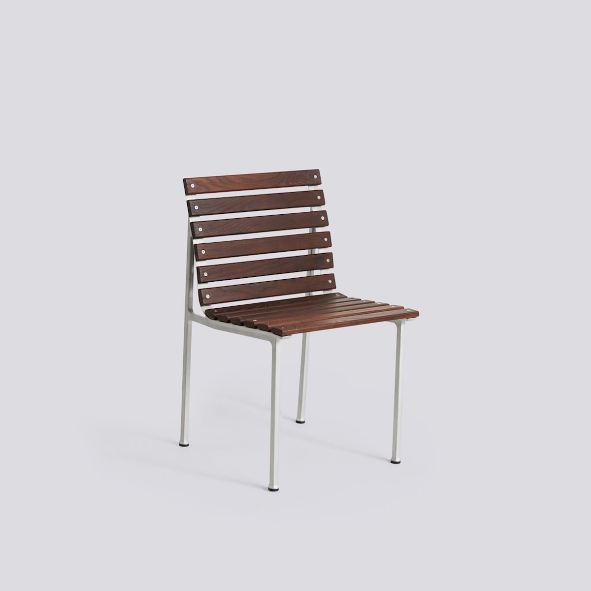Designed for HAY by Erwan Bouroullec, the Traverse Chair and Armchair are part of an outdoor furniture collection designed to naturally blend in wherever it is placed. Comprising a die-cast aluminium frame with slatted seat in heat-treated ash, the chairs combine a robust construction with an inviting expression that naturally patinates to make them more beautiful over time. With their well-balanced aesthetics and ergonomic design, the Traverse Chair and Armchair can be used together with Traverse Tables to create dining and social set-ups in a wide range of private and public spaces.