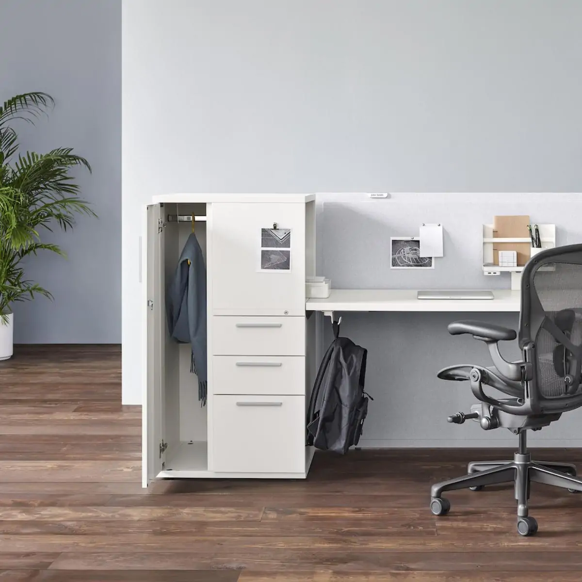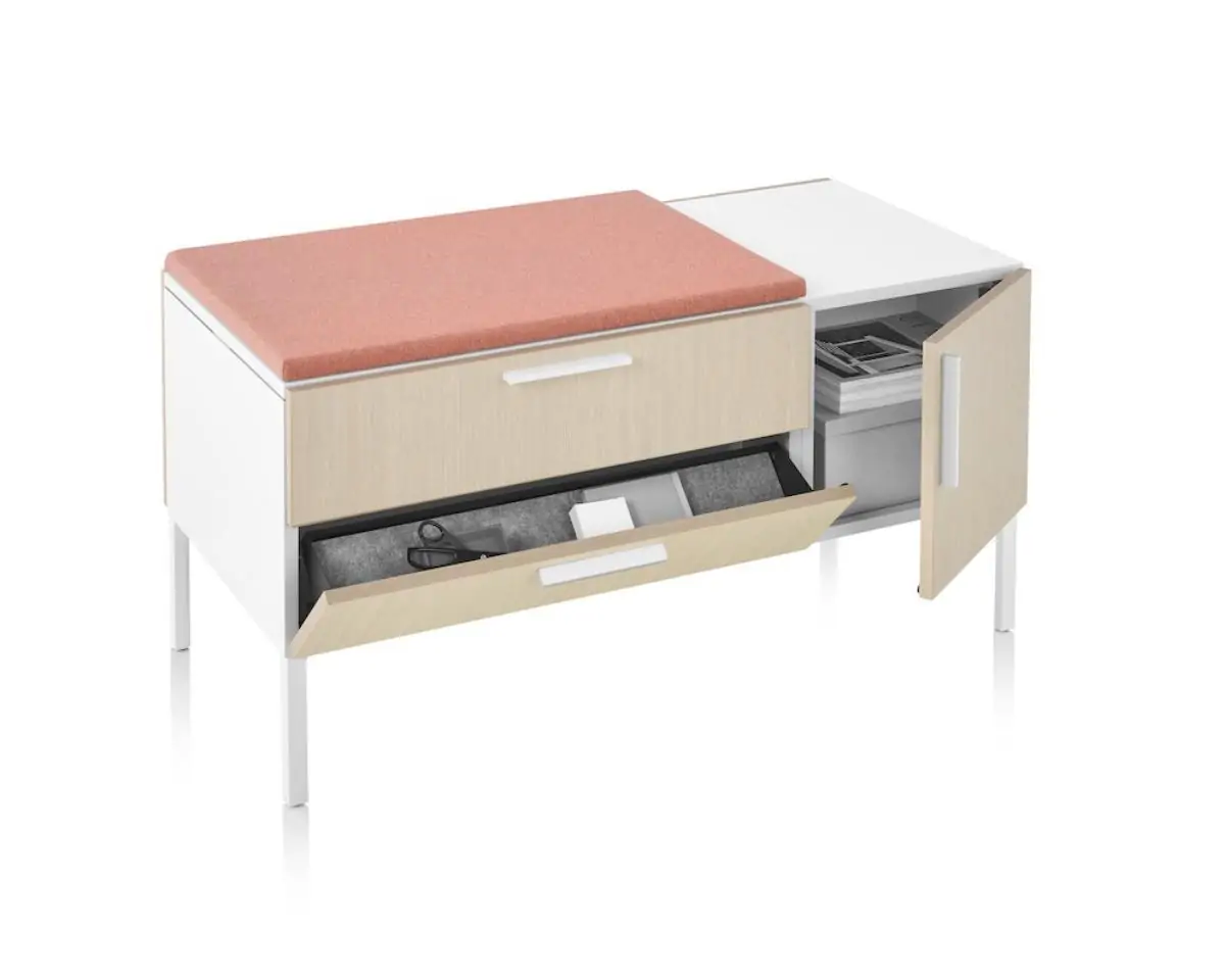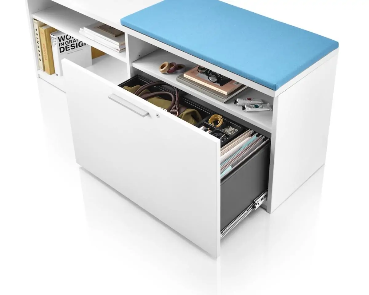Tu Storage is a modernized and personalized take on storage that accommodates the items people actually use. It keeps things for working and living nearby, so people have a more personal connection to their work and the workplace. In that way, Tu is an essential ingredient in tailoring individual workspaces to best support the work people do.