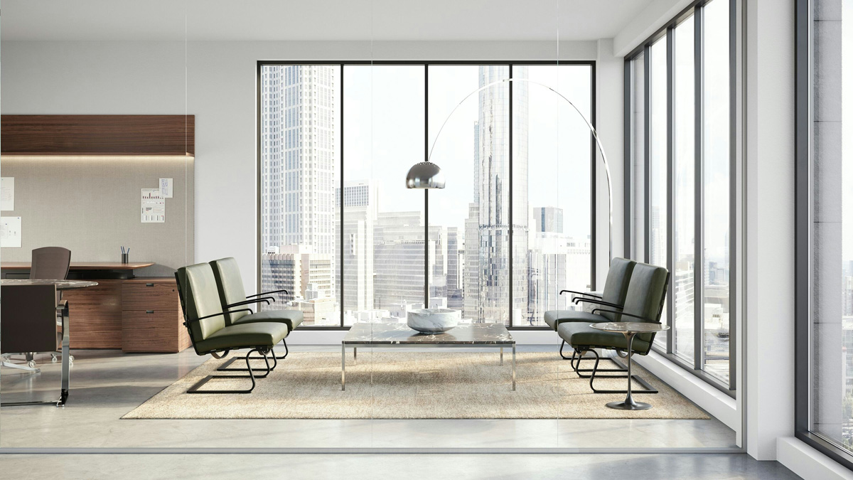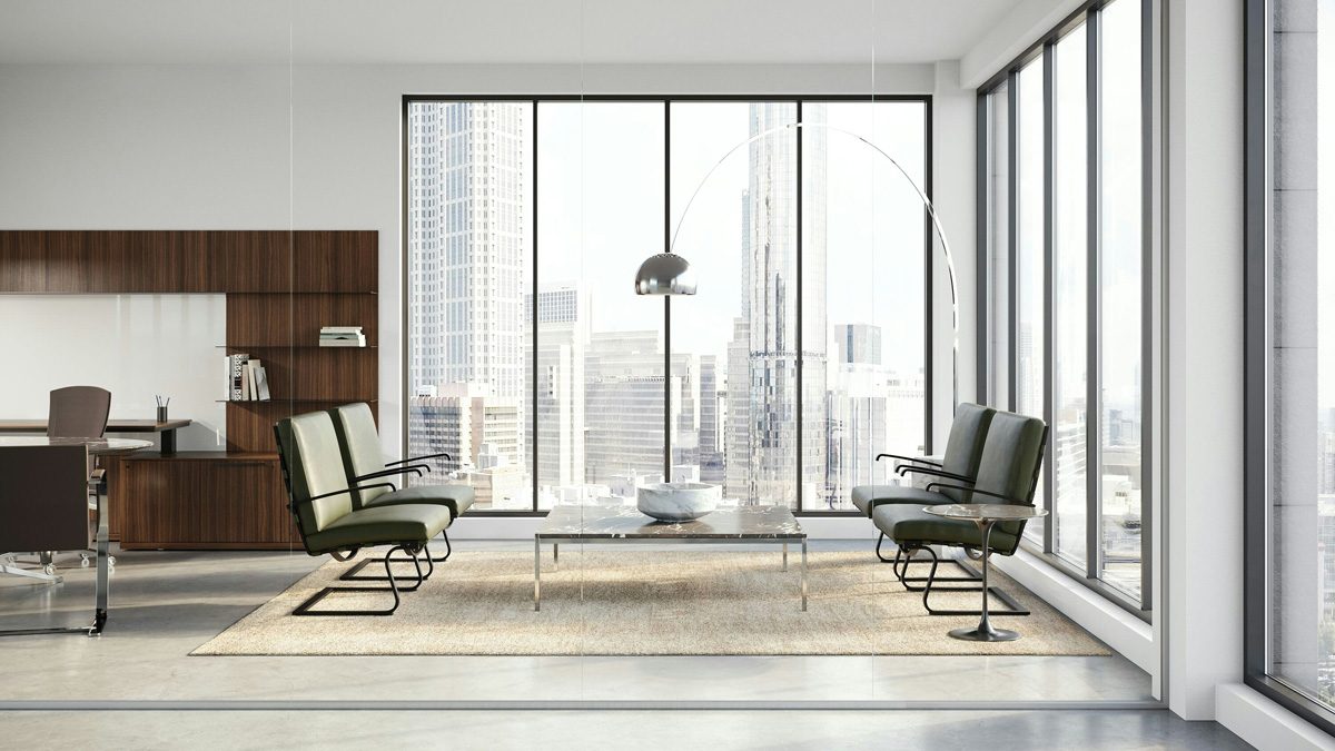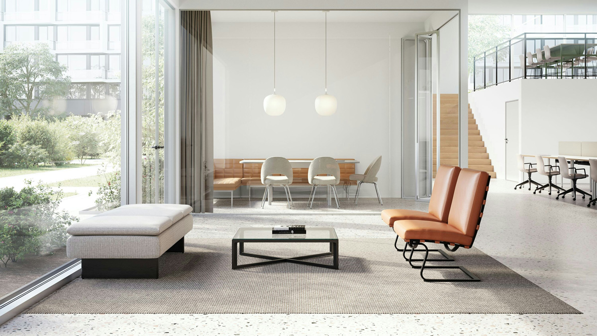 The Tugendhat Chair from Knoll was designed by Ludwig Mies van der Rohe to fuse comfort and sophistication. Impeccably built with a cantilevered frame and luxurious Spinneybeck leather straps, it beckons movement and relaxation. The premium-quality cushions and stunning polished chrome or powder-coated finish are ideal for office or hospitality settings.