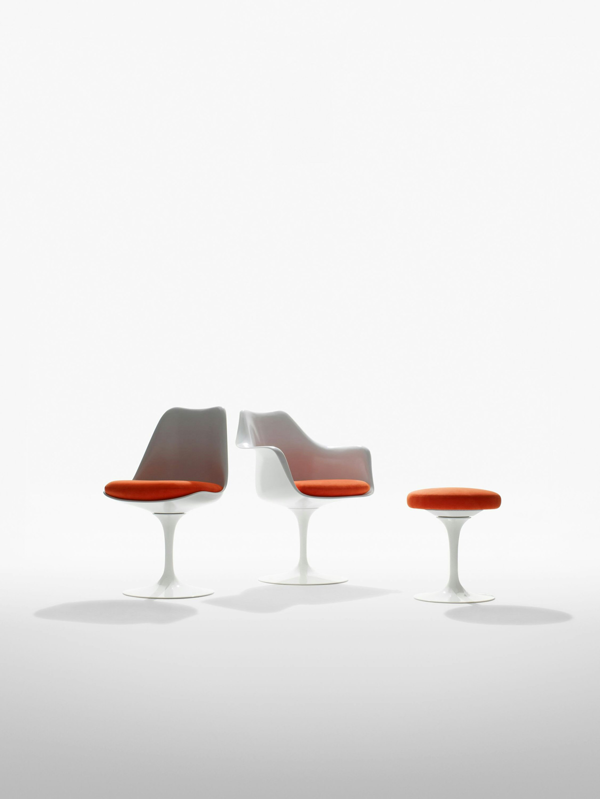 The Tulip Armless Chair from Knoll is an iconic chair that was designed by Eero Saarinen. With this original design, he wanted to resolve the “ugly, confusing, unrestful world” of too many cumbersome legs underneath tables and chairs. Featuring a thin stemmed, swivel base with an upholstered seat, its floral-inspired shell adds an organic touch to any space. Choose from a variety of fabrics and finishes to customize yours.
