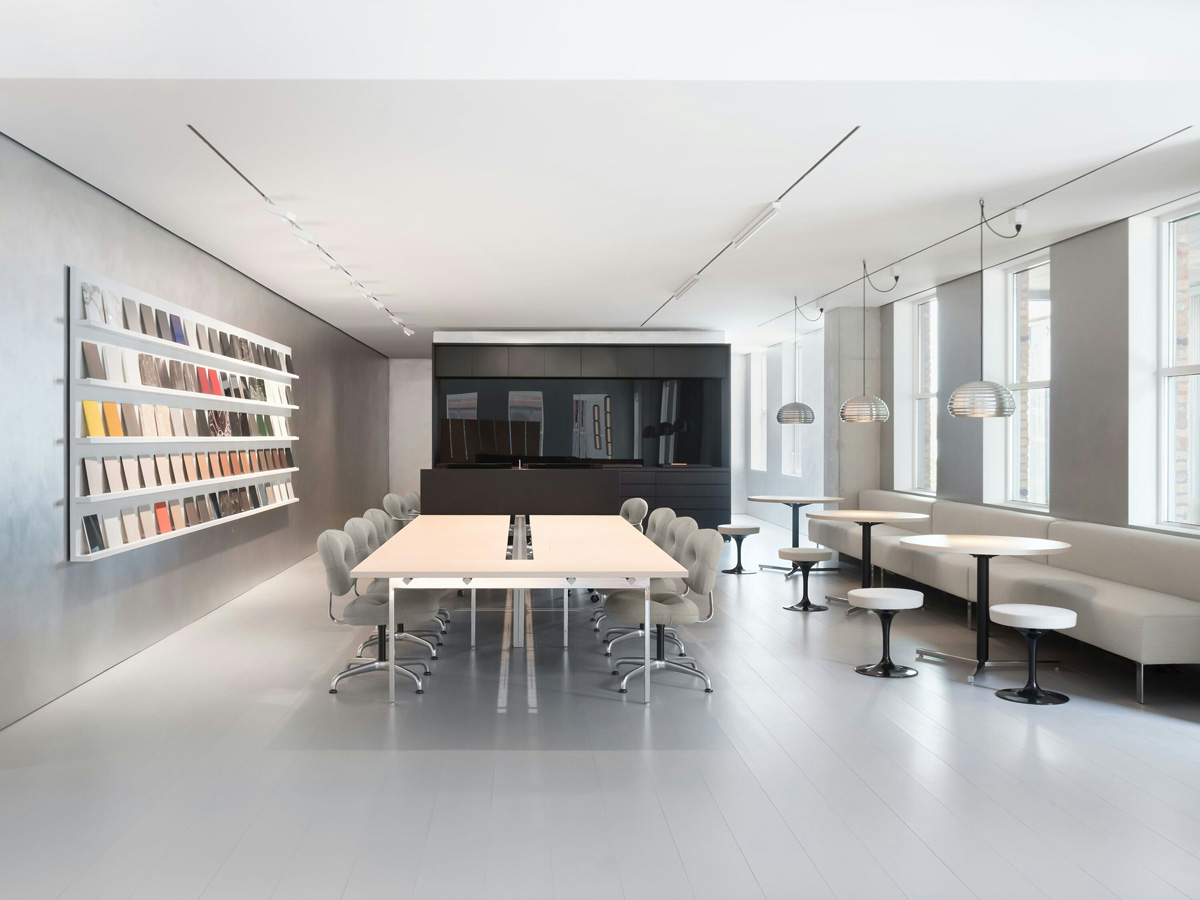 With the Pedestal Collection, Eero Saarinen vowed to eliminate the “slum of legs” found under chairs and tables with four legs. He worked first with hundreds of drawings, which were followed by ¼ scale models. Since the compelling idea was to design chairs that looked good in a room, the model furniture was set up in a scaled model room the size of a doll house.