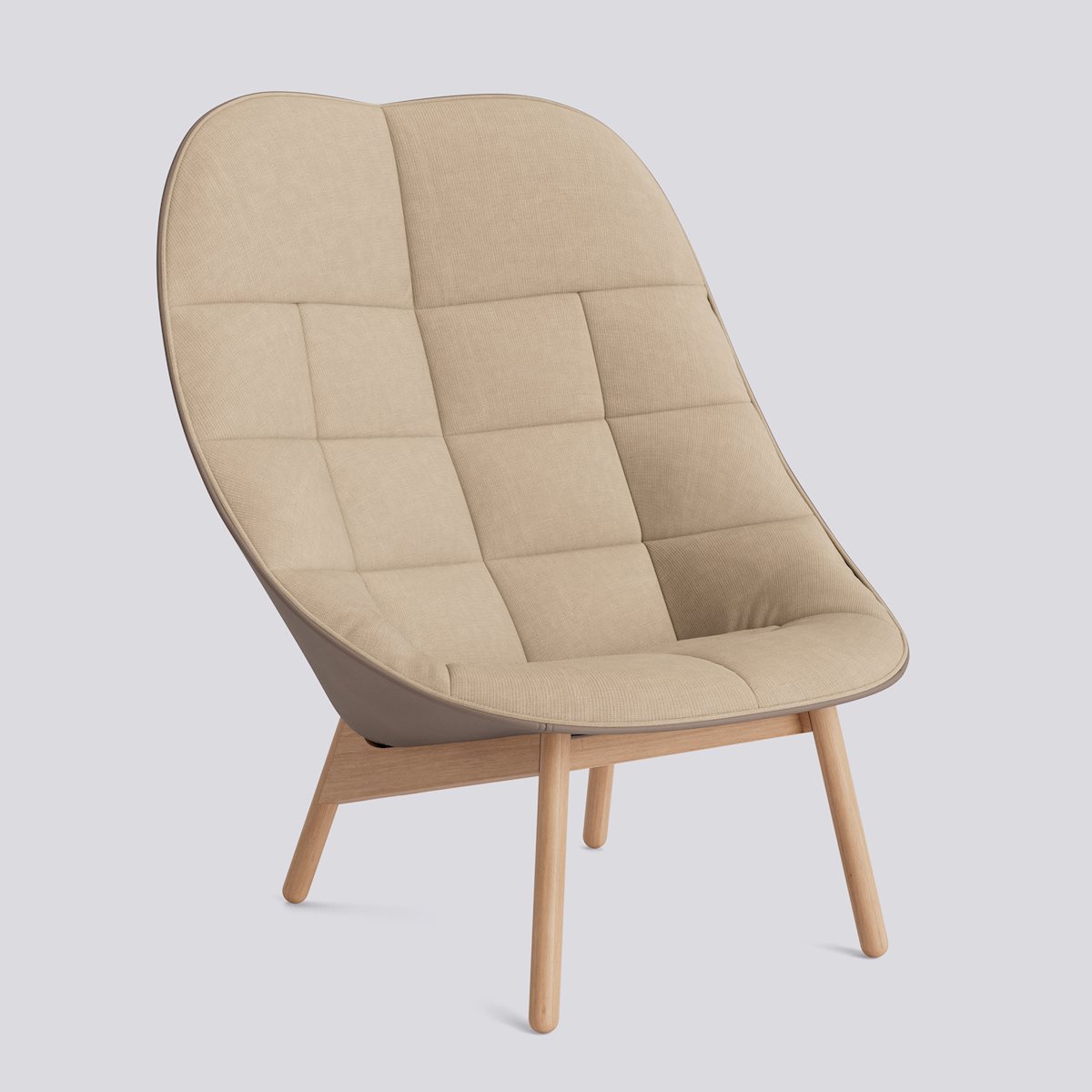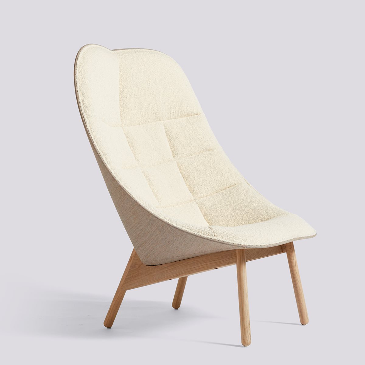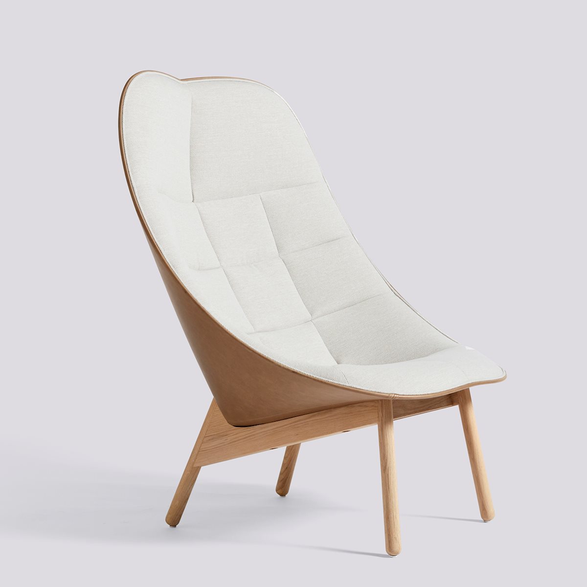 Designed by Doshi Levien, Uchiwa Quilted is a capacious armchair that takes its soft and open shape from the traditional Japanese hand fan. The chair’s generous and inviting shape features quilted upholstery with strategic darts that give the chair a cushioned, embracing expression. Crafted with an oak base, Uchiwa Quilted is available in different upholstery options and wood finishes.