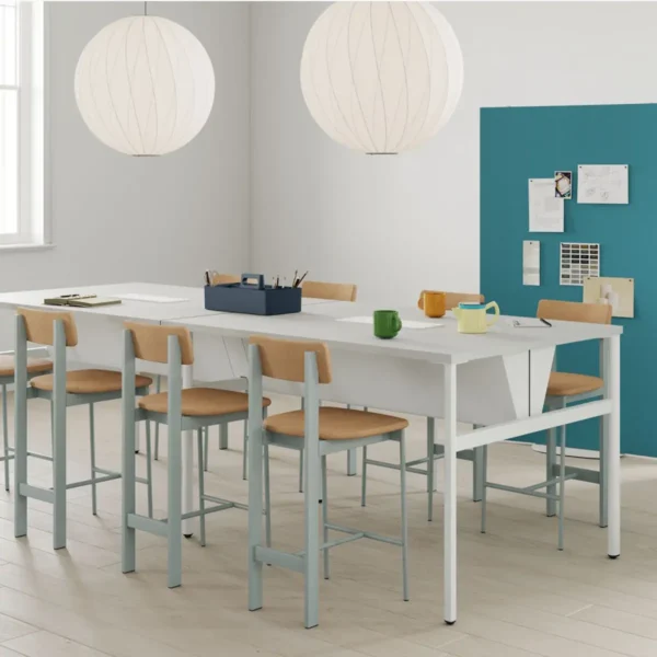 Designed in a material that uses 49% fibers made from recycled plastic, the Under The Bell Pendant Lamp not only brings a tactile and modern expression to any space but also impacts the acoustics of a room through its soft shade, paired with its graphic lines and subtle color palette.