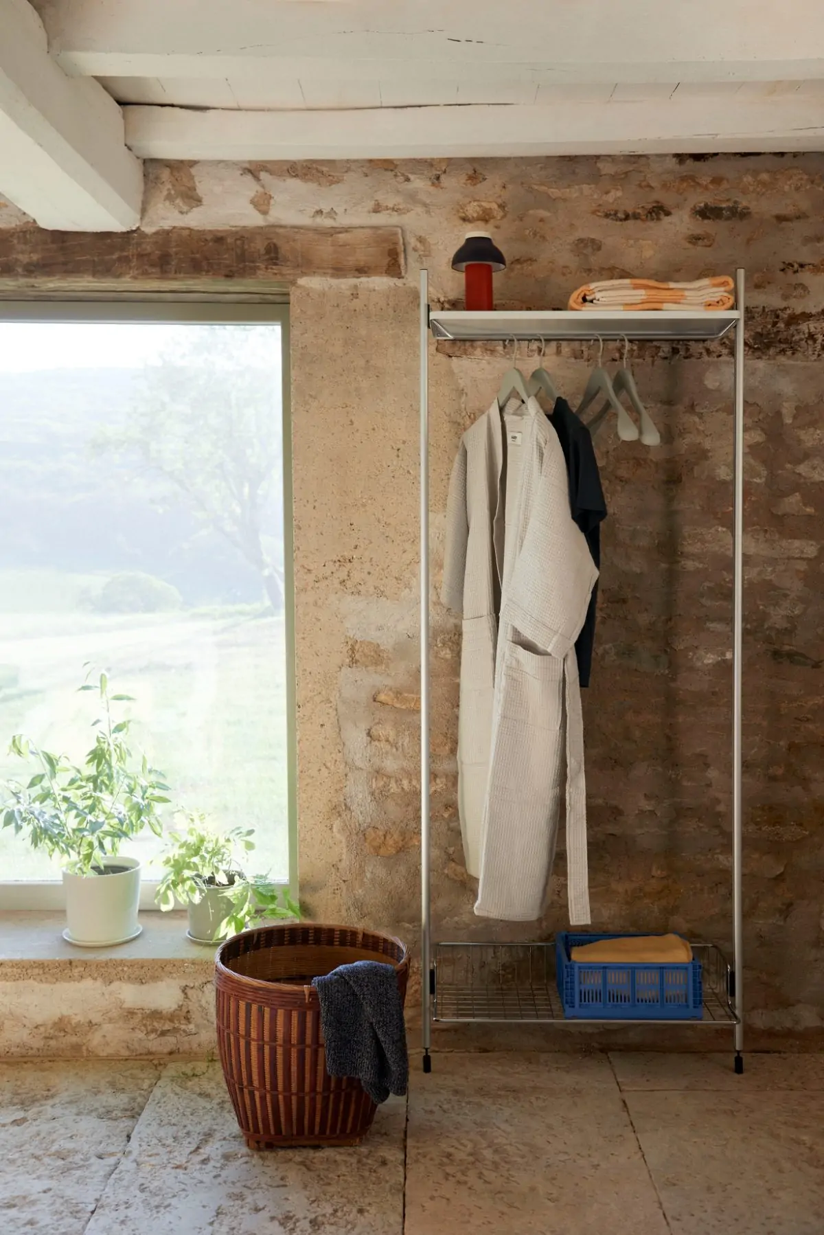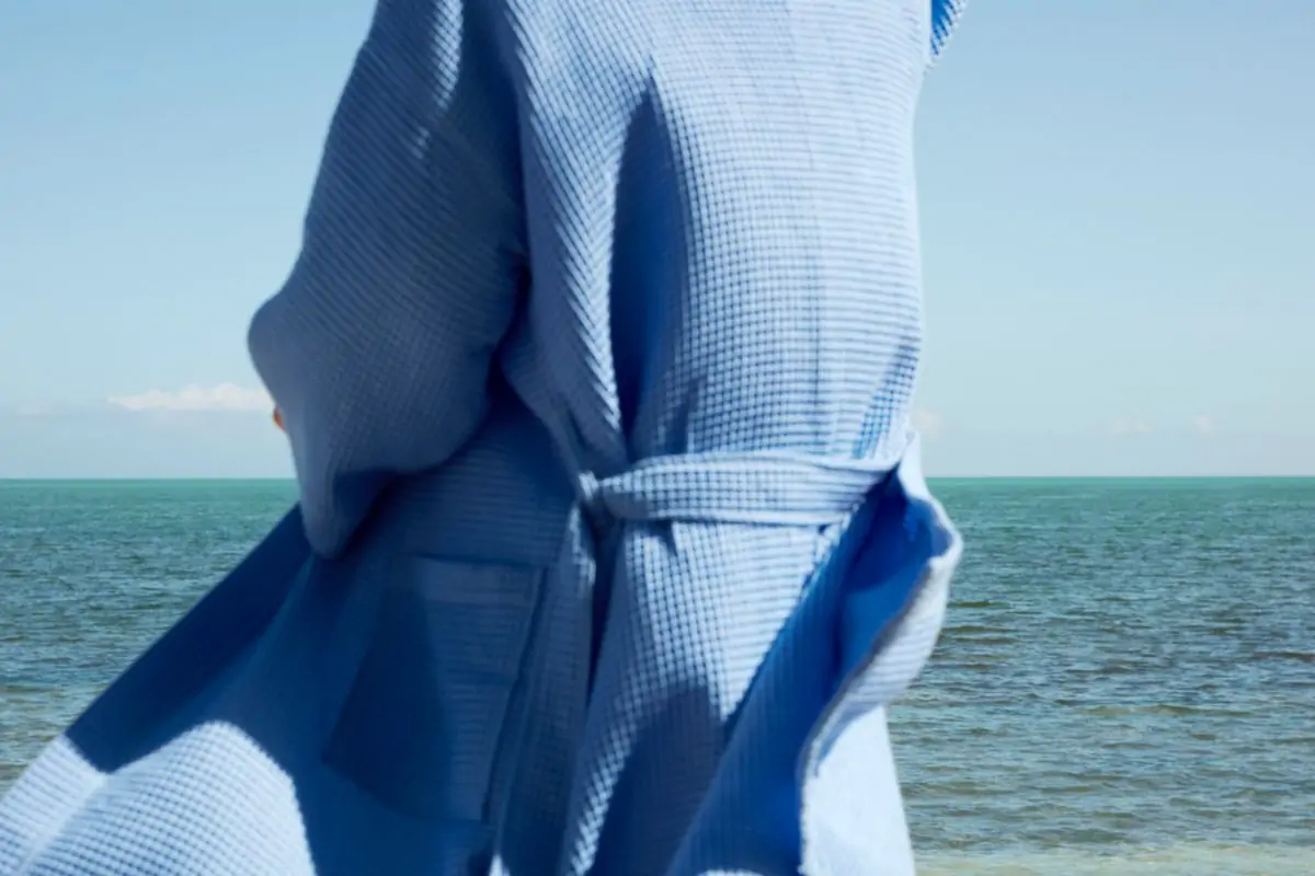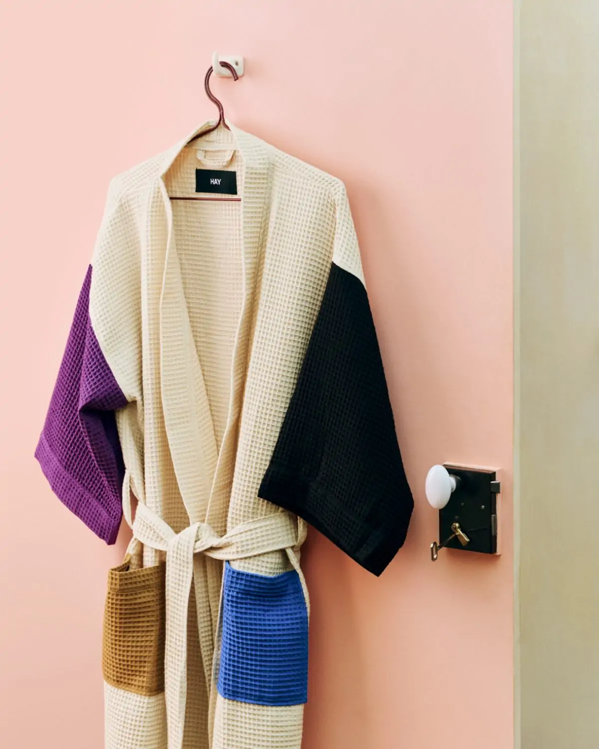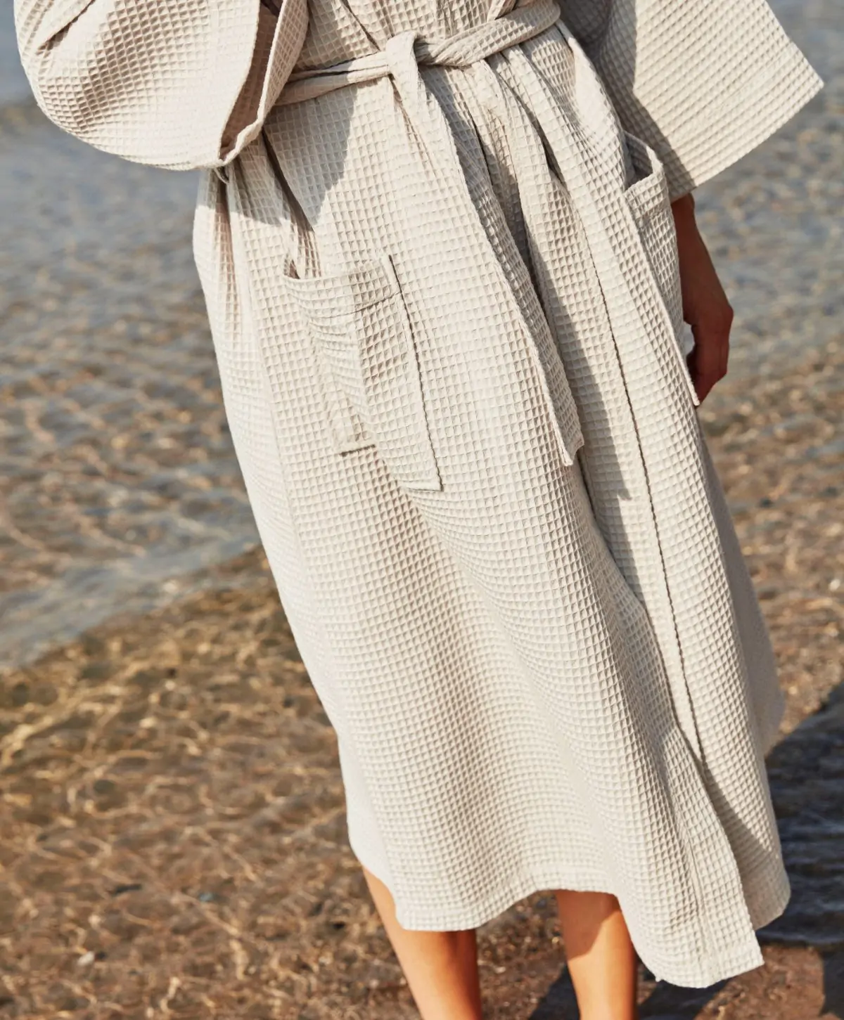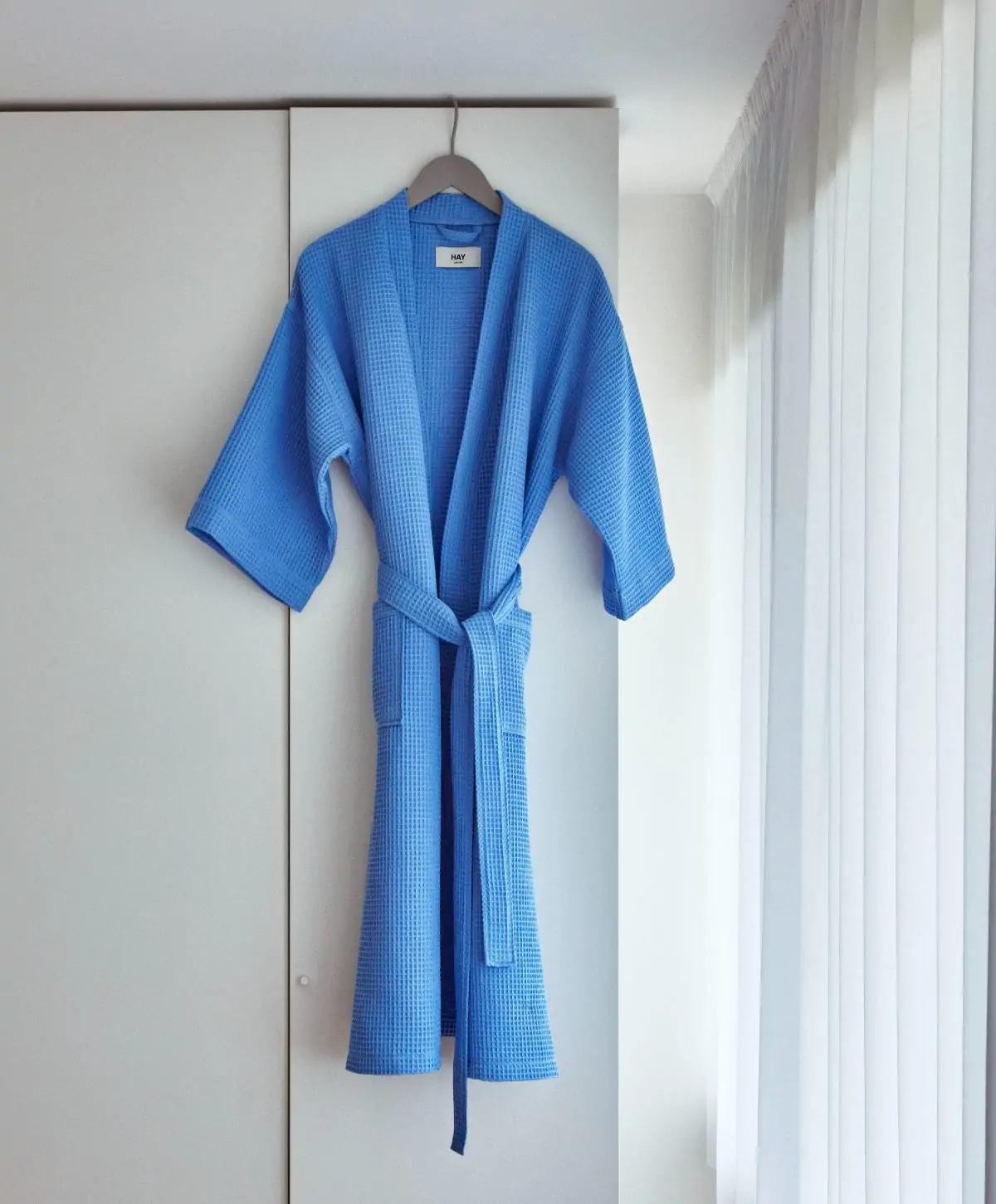 The Waffle Bathrobe is a series of versatile bathrobes in a soft and durable cotton-blend with a distinctive three-dimensional waffle texture. Featuring a relaxed shape, pockets and matching tie belt, it is a stylish and functional design that can be used around the house, on the beach or by the pool. Available in different colour options.