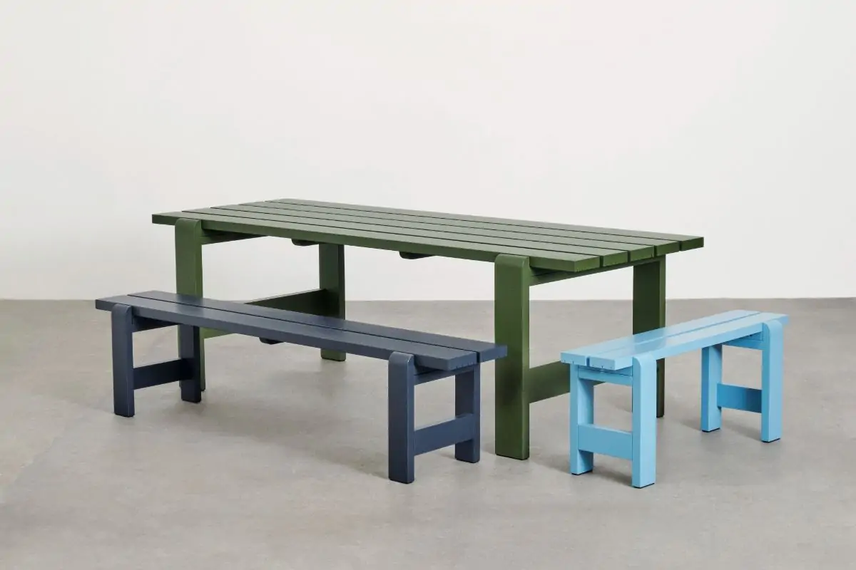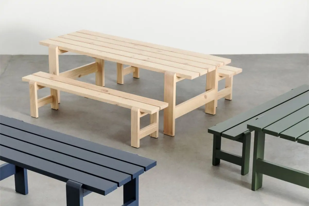 Hannes & Fritz’s Weekday Table was inspired by the idea of bringing people together and communal dining experiences. Combining a solid, robust presence with softly rounded joints, the Weekday Table conveys a sense of warmth and familiarity that invites shared mealtimes and a social atmosphere. Featuring the same simple construction as the classic picnic table, it is made in strong, durable pine planks that will patinate beautifully and last for many years to come. The Weekday Table’s strong yet universally appealing character combined with its water-based weather-resistant surface treatment makes it suitable for outside use in a wide range of settings, from cafés and public parks to private or shared gardens. Available in different sizes in solid pine in various finishes and colours.
