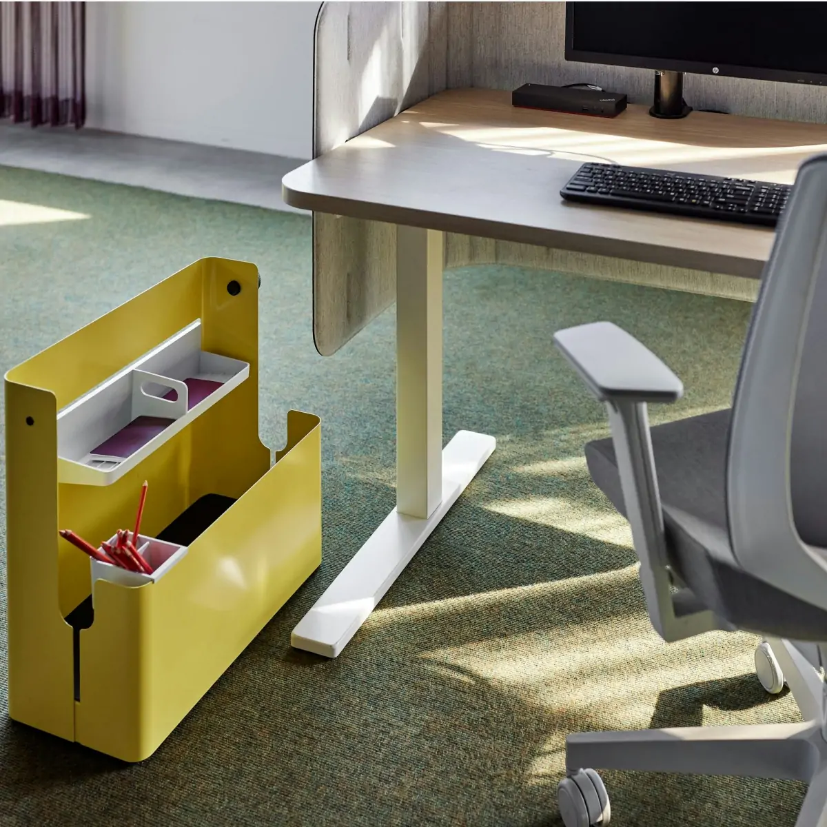 Ambit is a thoughtful, scalable, and comprehensive offering of accessories designed to support the sit-to-stand working environment. Developed to easily integrate into our existing portfolio of height-adjustable table products, Ambit offers solutions you can use across the office floorplate to optimize your workday experience.