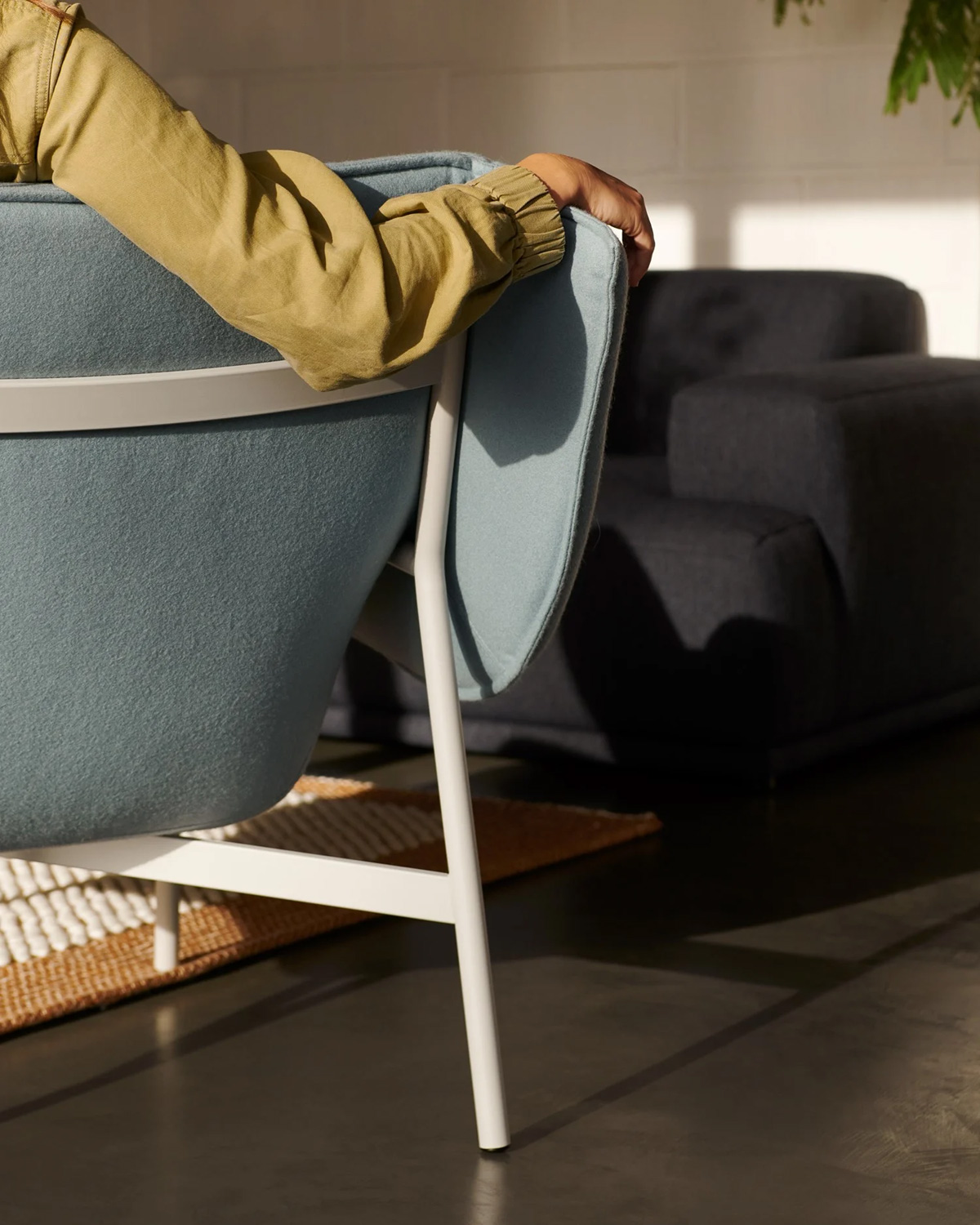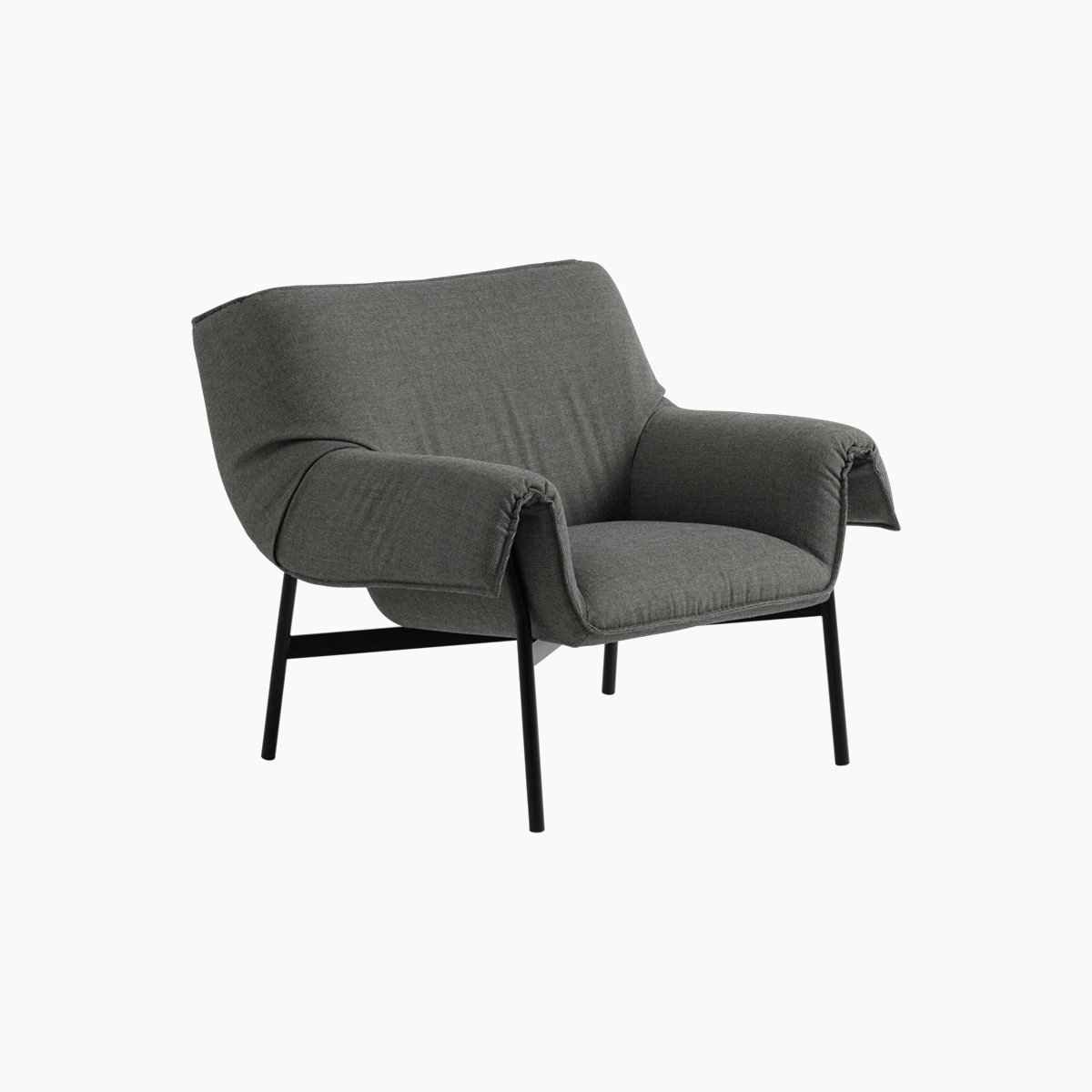 The Wrap Lounge Chair from Muuto provides comfort with character. This comfortable lounge chair includes a generous shape supported by a light steel frame and finished with a blanket-like, draped upholstery. Airy and inviting, it takes relaxation to new levels in lounges or lobbies.